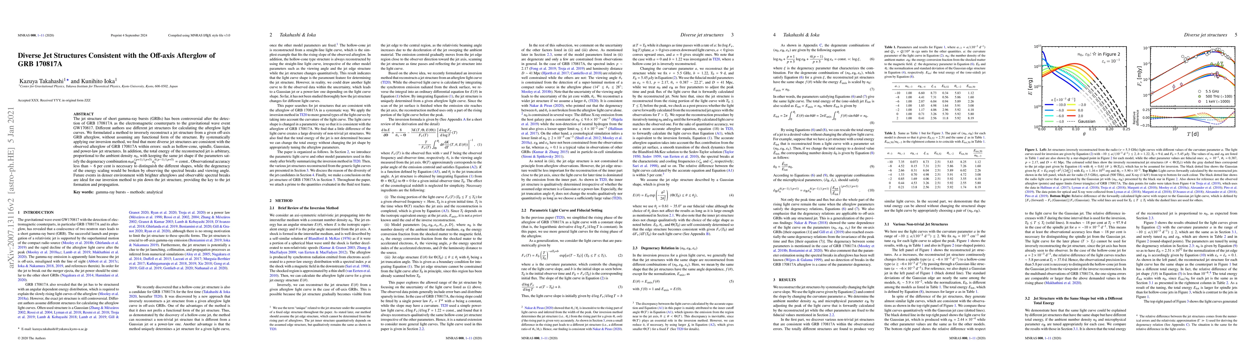 Researchers found that different jet structures can explain the observed afterglow of GRB 170817A, including hollow-cone, spindle, Gaussian, and power-law shapes, with varying total energy levels.