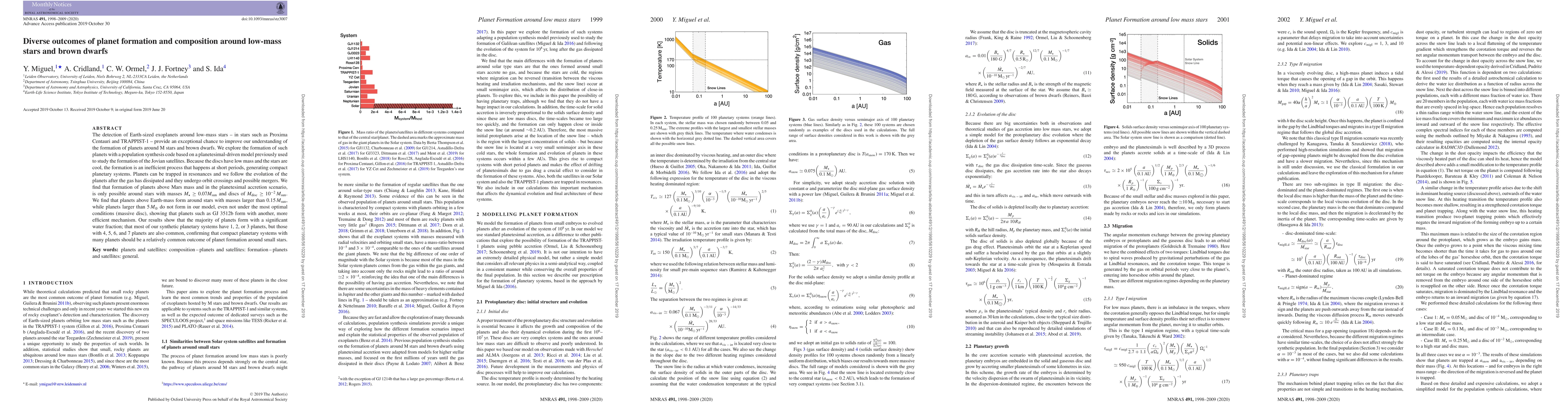 The detection of Earth-size exoplanets around low-mass stars -- in stars such as Proxima Centauri and TRAPPIST-1 -- provide an exceptional chance to improve our understanding of the formation of planets around M stars and brown dwarfs. We explore the formation of such planets with a population synthesis code based on a planetesimal-driven model previously used to study the formation of the Jovian satellites. Because the discs have low mass and the stars are cool, the formation is an inefficient process that happens at short periods, generating compact planetary systems. Planets can be trapped in resonances and we follow the evolution of the planets after the gas has dissipated and they undergo orbit crossings and possible mergers. We find that formation of planets above Mars mass and in the planetesimal accretion scenario, is only possible around stars with masses $M_{\star} \ge 0.07 M_{sun}$ and discs of $M_{disc} \ge 10^{-2}~M_{sun} $. We find that planets above Earth-mass form around stars with masses larger than $0.15 M_{\oplus}$ while planets larger than $5 M_{\oplus}$do not form in our model, even not under the most optimal conditions (massive disc), showing that planets such as GJ 3512b form with another, more efficient mechanism. Our results show that the majority of planets form with a significant water fraction; that most of our synthetic planetary systems have 1, 2, or 3 planets, but those with 4, 5, 6, and 7 planets are also common, confirming that compact planetary systems with many planets should be a relatively common outcome of planet formation around small stars.