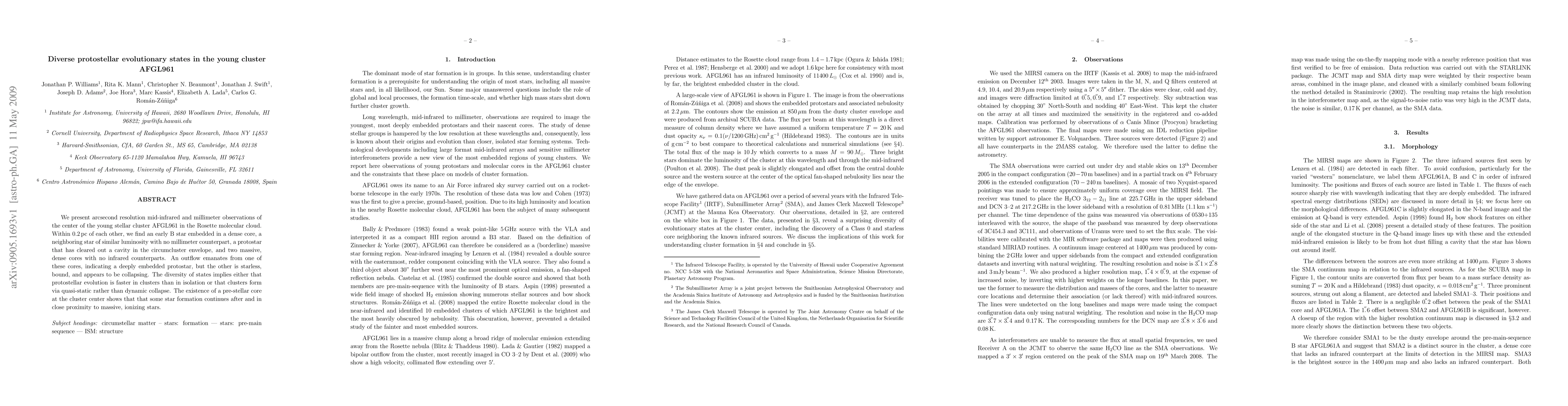 We present arcsecond resolution mid-infrared and millimeter observations of the center of the young stellar cluster AFGL961 in the Rosette molecular cloud. Within 0.2 pc of each other, we find an early B star embedded in a dense core, a neighboring star of similar luminosity with no millimeter counterpart, a protostar that has cleared out a cavity in the circumcluster envelope, and two massive, dense cores with no infrared counterparts. An outflow emanates from one of these cores, indicating a deeply embedded protostar, but the other is starless, bound, and appears to be collapsing. The diversity of states implies either that protostellar evolution is faster in clusters than in isolation or that clusters form via quasi-static rather than dynamic collapse. The existence of a pre-stellar core at the cluster center shows that that some star formation continues after and in close proximity to massive, ionizing stars.
