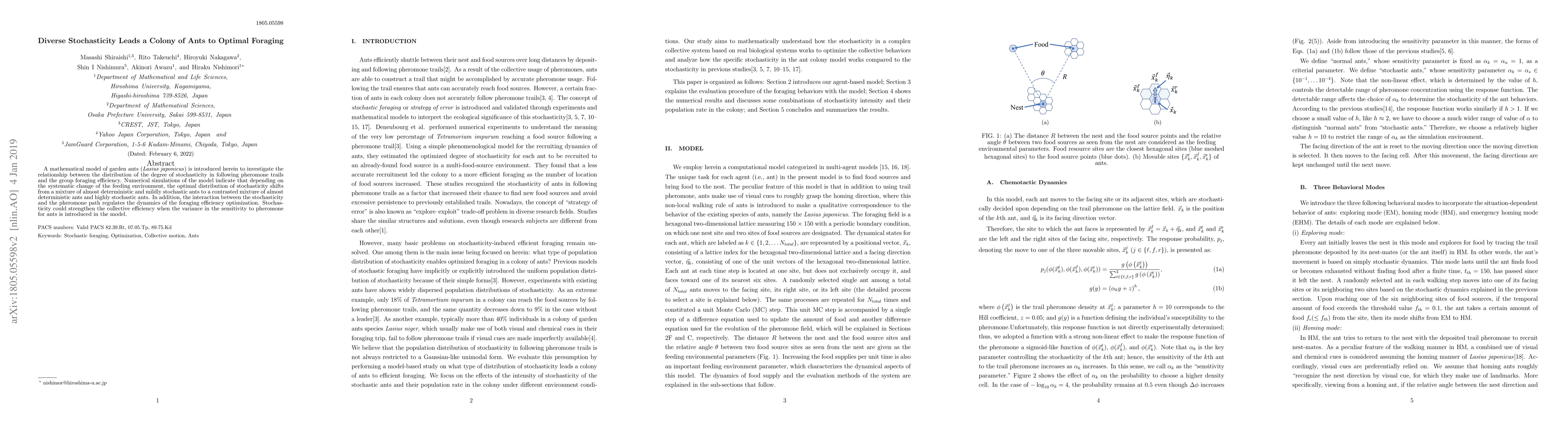 This paper models garden ants' foraging behavior to show that varying levels of stochasticity among ants optimizes their collective efficiency. The study reveals that shifts in the foraging environment lead to changes in the optimal stochasticity distribution, enhancing the group's ability to find food.