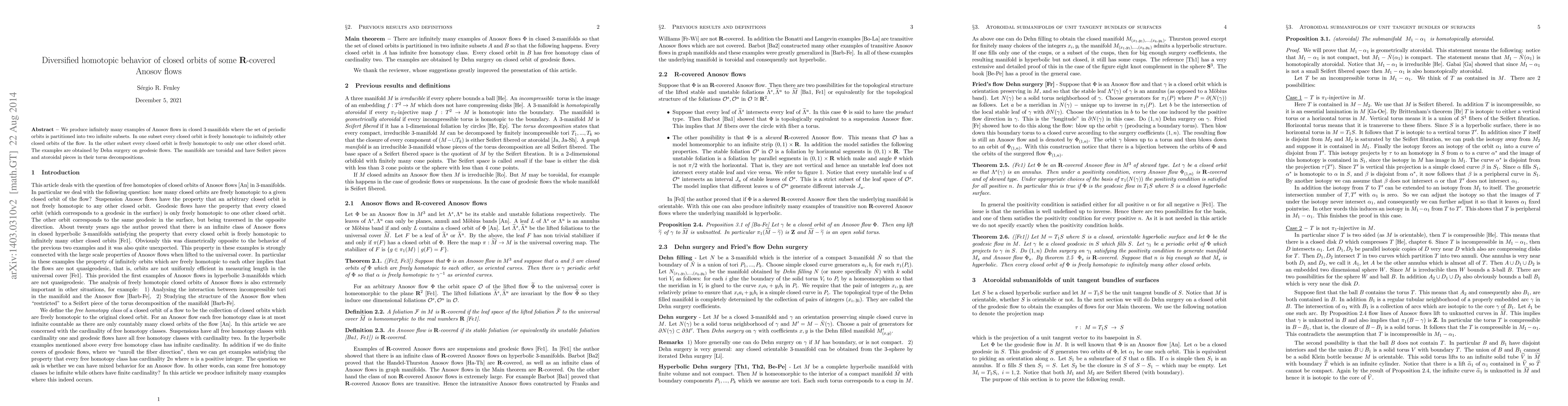 We produce infinitely many examples of Anosov flows in closed 3-manifolds where the set of periodic orbits is partitioned into two infinite subsets. In one subset every closed orbit is freely homotopic to infinitely other closed orbits of the flow. In the other subset every closed orbit is freely homotopic to only one other closed orbit. The examples are obtained by Dehn surgery on geodesic flows. The manifolds are toroidal and have Seifert fibered pieces and atoroidal pieces in their torus decompositions.