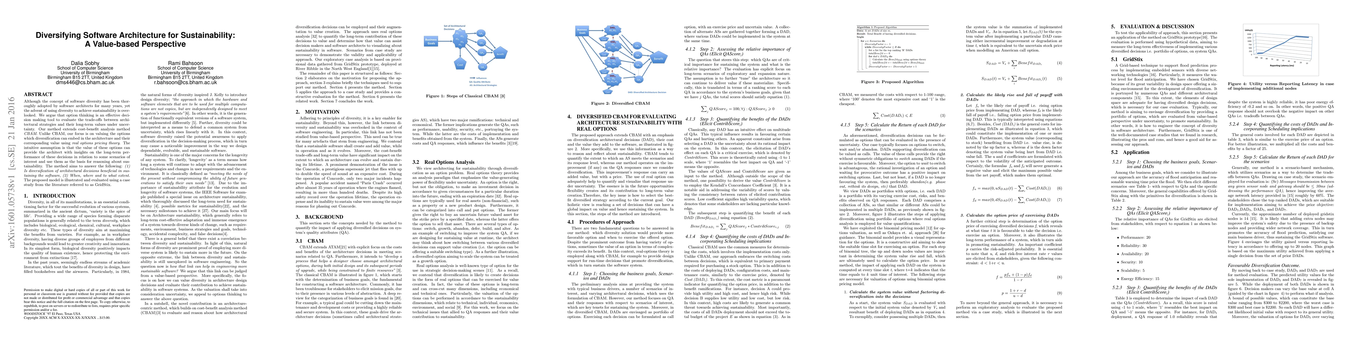 This paper proposes a value-based approach to software architecture for sustainability by applying option thinking and real options pricing theory to evaluate the long-term benefits of diversification. It aims to answer how diversification can benefit sustainability in software development.
