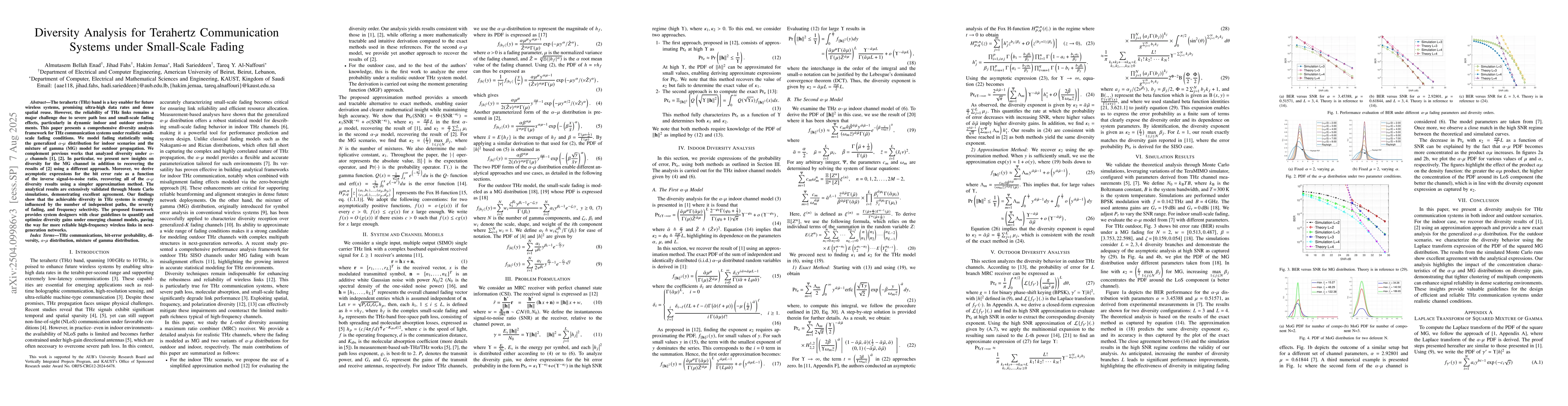 The research presents a diversity analysis for indoor THz communication systems, deriving closed-form expressions for bit error rate (BER) considering path loss and small-scale fading modeled as an $\alpha-\mu$ distribution. These expressions are validated through extensive simulations.