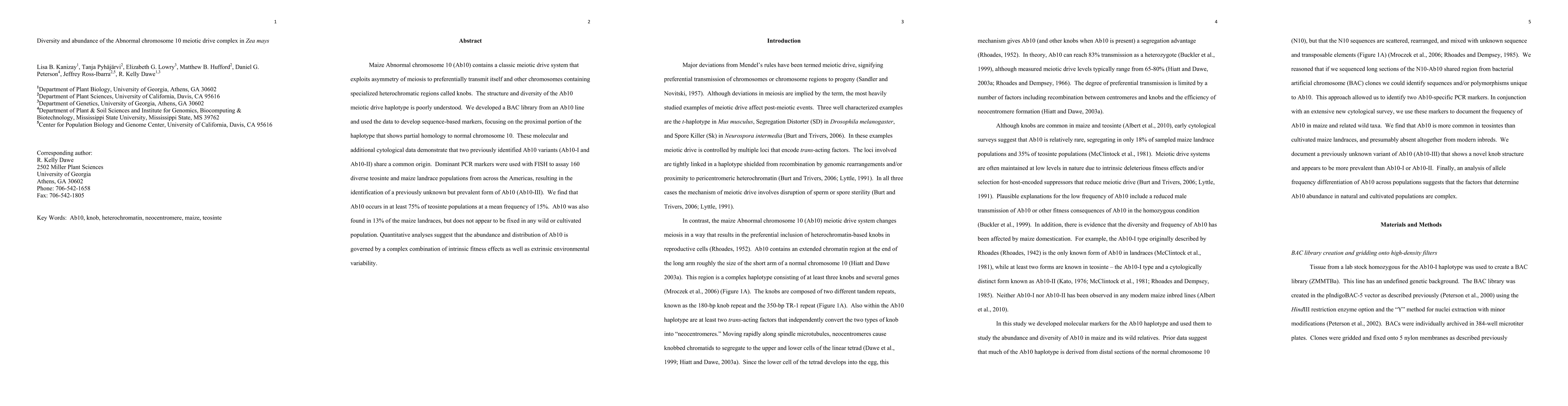 A study on maize chromosome 10 found a prevalent meiotic drive system that affects about 75% of teosinte populations, with the Ab10 variant occurring in 15% of maize landraces.