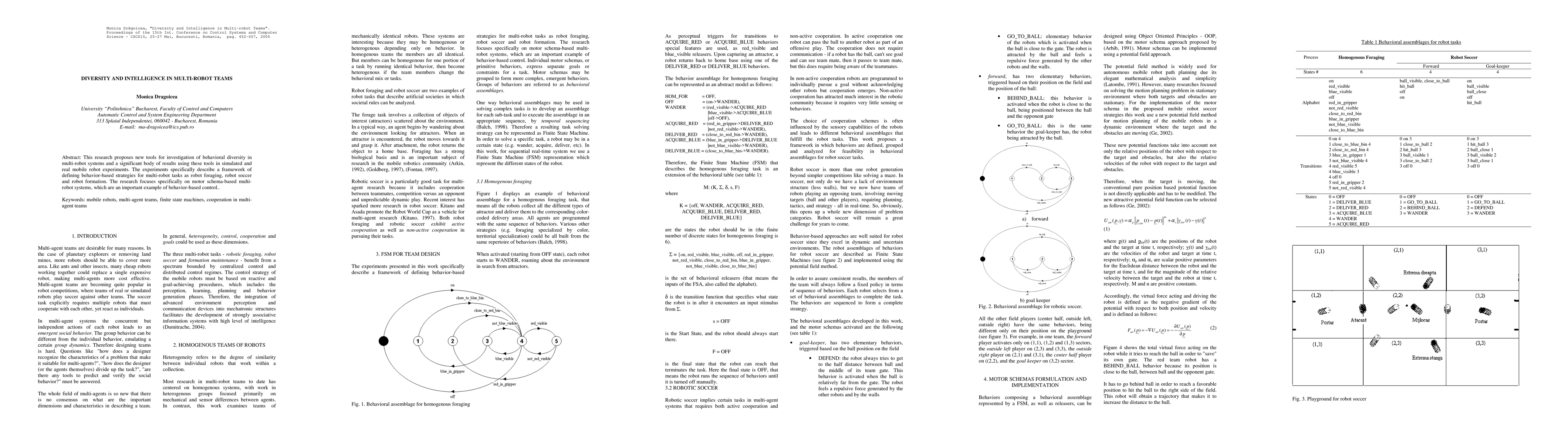 This research proposes new tools for investigation of behavioral diversity in multi-robot systems and a significant body of results using these tools in simulated and real mobile robot experiments. The experiments specifically describe a framework of defining behavior-based strategies for multi-robot tasks as robot foraging, robot soccer and robot formation. The research focuses specifically on motor schema-based multi-robot systems, which are an important example of behavior-based control.