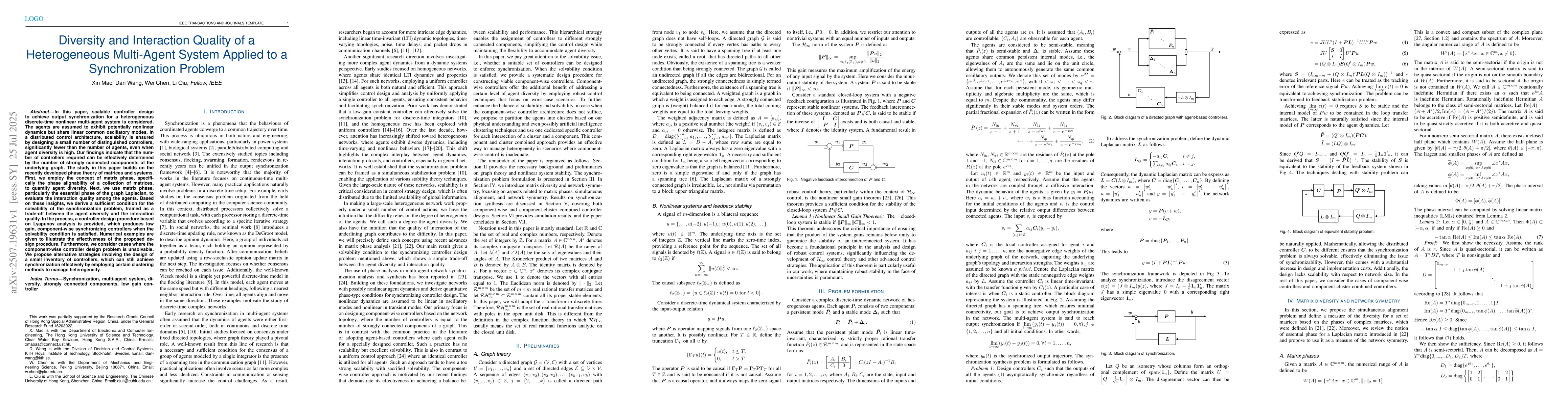 In this paper, scalable controller design to achieve output synchronization for a heterogeneous discrete-time nonlinear multi-agent system is considered. The agents are assumed to exhibit potentially nonlinear dynamics but share linear common oscillatory modes. In a distributed control architecture, scalability is ensured by designing a small number of distinguished controllers, significantly fewer than the number of agents, even when agent diversity is high. Our findings indicate that the number of controllers required can be effectively determined by the number of strongly connected components of the underlying graph. The study in this paper builds on the recently developed phase theory of matrices and systems. First, we employ the concept of matrix phase, specifically the phase alignability of a collection of matrices, to quantify agent diversity. Next, we use matrix phase, particularly the essential phase of the graph Laplacian, to evaluate the interaction quality among the agents. Based on these insights, we derive a sufficient condition for the solvability of the synchronization problem, framed as a trade-off between the agent diversity and the interaction quality. In the process, a controller design procedure based on Lyapunov analysis is provided, which produces low gain, component-wise synchronizing controllers when the solvability condition is satisfied. Numerical examples are given to illustrate the effectiveness of the proposed design procedure. Furthermore, we consider cases where the component-wise controller design problem is unsolvable. We propose alternative strategies involving the design of a small inventory of controllers, which can still achieve synchronization effectively by employing certain clustering methods to manage heterogeneity.