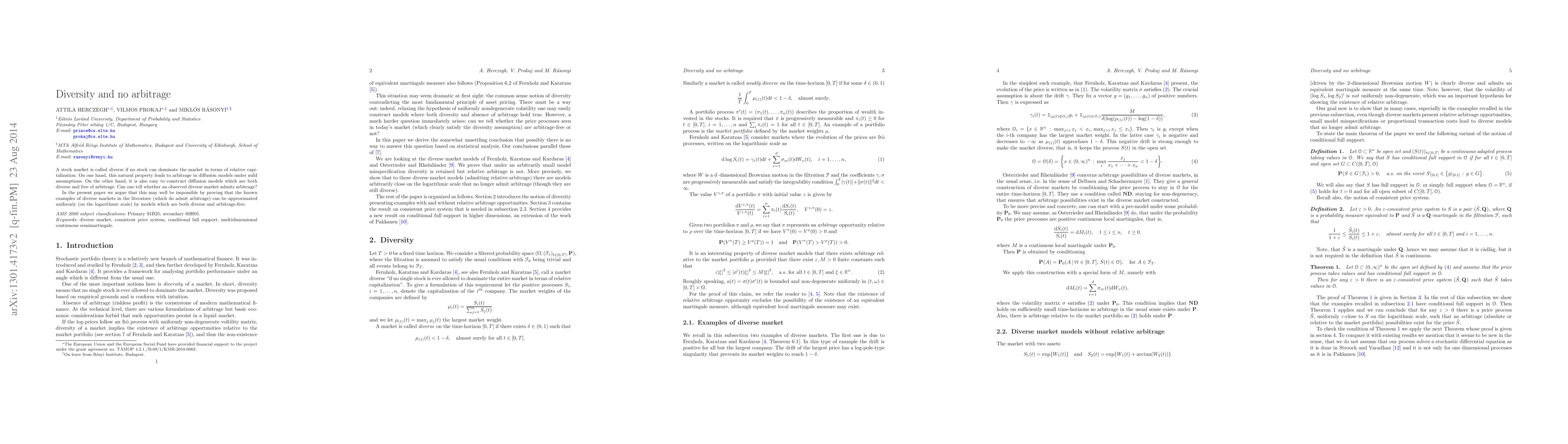 Researchers show that diverse stock markets, which cannot be dominated by a single stock, can be approximated by models without arbitrage, making it impossible to tell if a market admits arbitrage.