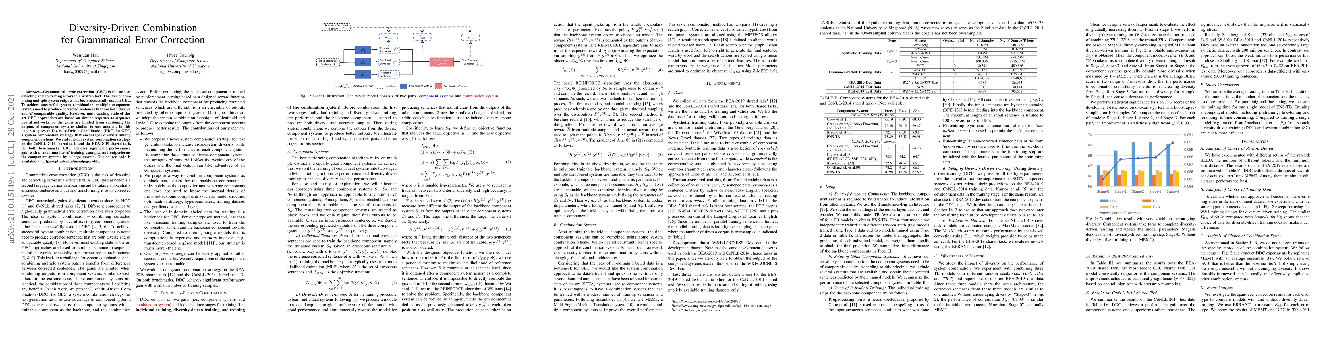 This paper introduces Diversity-Driven Combination (DDC) for grammatical error correction, a strategy that promotes diversity among component systems to enhance performance. The DDC approach significantly outperforms individual systems on the CoNLL-2014 and BEA-2019 benchmarks, demonstrating its effectiveness in limited data scenarios.