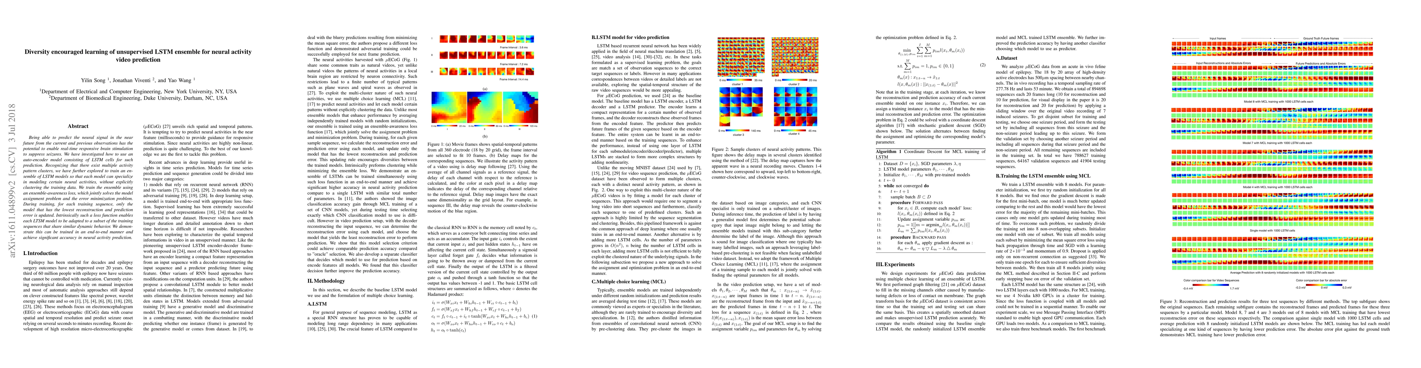 This research explores an unsupervised LSTM ensemble model for predicting neural activity in video data, aiming to enable real-time brain stimulation for seizure suppression. The ensemble trains without explicit data clustering, with each LSTM model specializing in different activity patterns, achieving significant prediction accuracy.