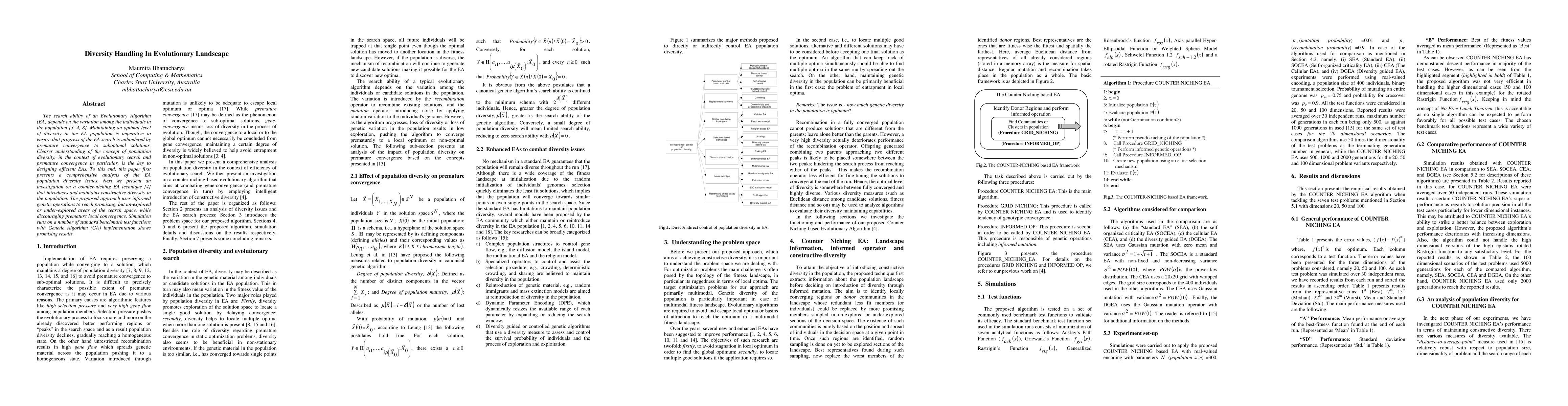 The search ability of an Evolutionary Algorithm (EA) depends on the variation among the individuals in the population. Maintaining an optimal level of diversity in the EA population is imperative to ensure that progress of the EA search is unhindered by premature convergence to suboptimal solutions. Clearer understanding of the concept of population diversity, in the context of evolutionary search and premature convergence in particular, is the key to designing efficient EAs. To this end, this paper first presents a comprehensive analysis of the EA population diversity issues. Next we present an investigation on a counter-niching EA technique that introduces and maintains constructive diversity in the population. The proposed approach uses informed genetic operations to reach promising, but un-explored or under-explored areas of the search space, while discouraging premature local convergence. Simulation runs on a number of standard benchmark test functions with Genetic Algorithm (GA) implementation shows promising results.