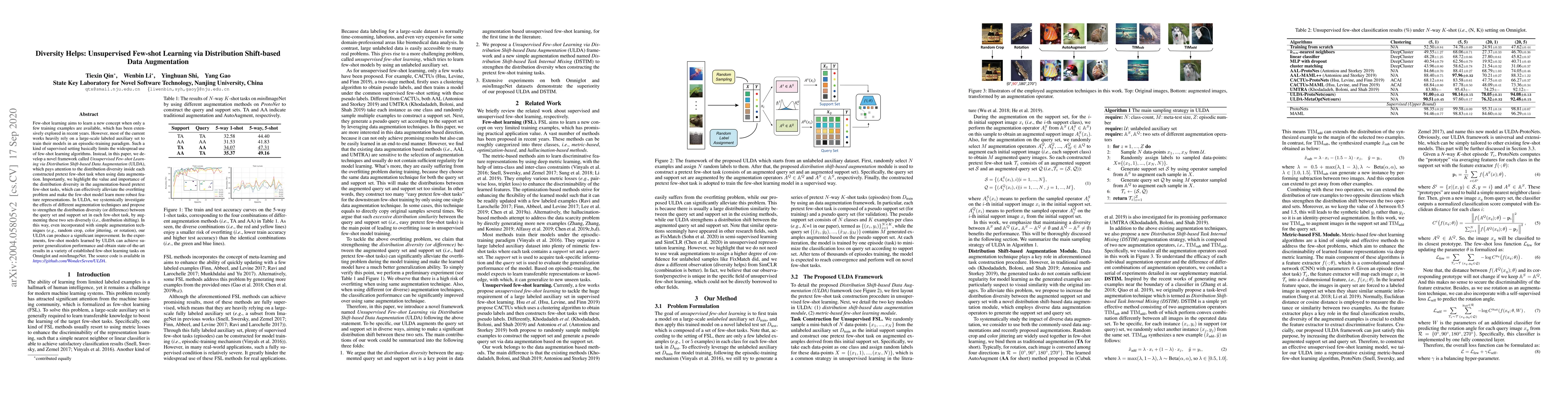 This paper proposes a novel unsupervised few-shot learning framework, ULDA, which leverages distribution shift-based data augmentation to enhance the diversity within generated few-shot tasks. By strategically augmenting the query and support sets differently, ULDA effectively reduces overfitting and boosts model robustness, achieving state-of-the-art results on Omniglot and miniImageNet without requiring large labeled datasets.