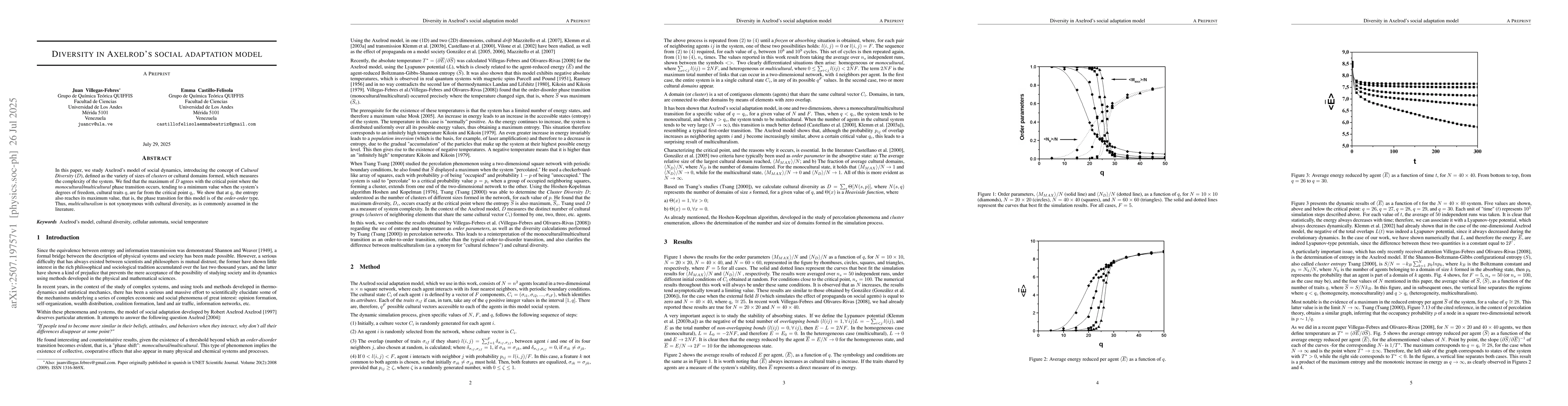 In this paper, we study Axelrod's model of social dynamics, introducing the concept of Cultural Diversity ($D$), defined as the variety of sizes of clusters or cultural domains formed, which measures the complexity of the system. We find that the maximum of $D$ agrees with the critical point where the monocultural/multicultural phase transition occurs, tending to a minimum value when the system's degrees of freedom, cultural traits $q$, are far from the critical point $q_c$. We show that at $q_c$ the entropy also reaches its maximum value, that is, the phase transition for this model is of the order-order type. Thus, multiculturalism is not synonymous with cultural diversity, as is commonly assumed in the literature.