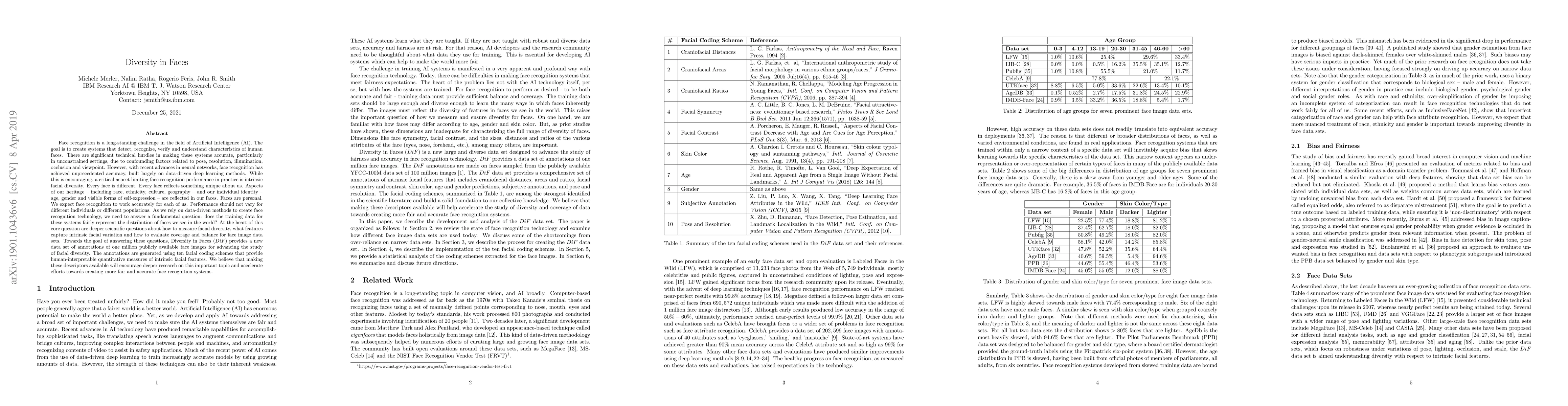 The paper discusses the challenges of achieving accurate and fair face recognition in AI, emphasizing the need for diverse training data to address inherent facial diversity. It introduces the "Diversity in Faces" dataset, which includes one million annotated human face images, aiming to advance research on facial diversity and improve the fairness and accuracy of facial recognition systems.