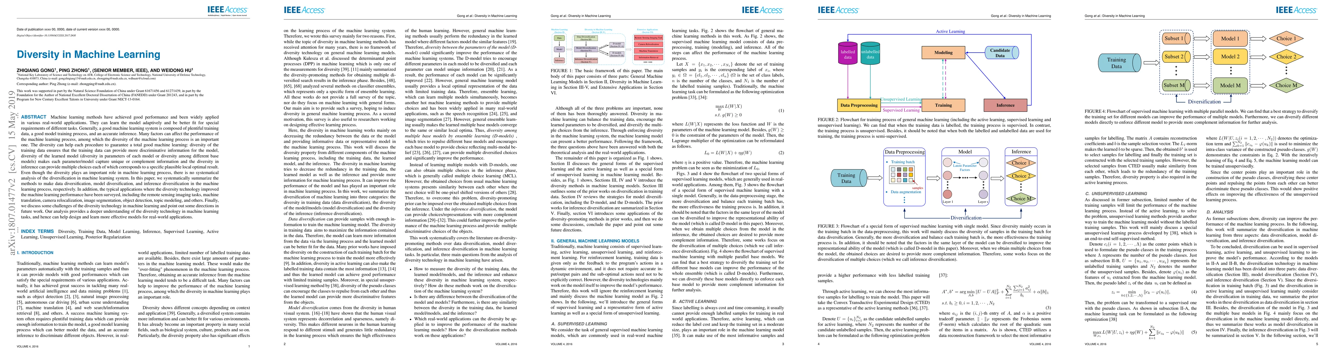 Machine learning methods have achieved good performance and been widely applied in various real-world applications. They can learn the model adaptively and be better fit for special requirements of different tasks. Generally, a good machine learning system is composed of plentiful training data, a good model training process, and an accurate inference. Many factors can affect the performance of the machine learning process, among which the diversity of the machine learning process is an important one. The diversity can help each procedure to guarantee a total good machine learning: diversity of the training data ensures that the training data can provide more discriminative information for the model, diversity of the learned model (diversity in parameters of each model or diversity among different base models) makes each parameter/model capture unique or complement information and the diversity in inference can provide multiple choices each of which corresponds to a specific plausible local optimal result. Even though the diversity plays an important role in machine learning process, there is no systematical analysis of the diversification in machine learning system. In this paper, we systematically summarize the methods to make data diversification, model diversification, and inference diversification in the machine learning process, respectively. In addition, the typical applications where the diversity technology improved the machine learning performance have been surveyed, including the remote sensing imaging tasks, machine translation, camera relocalization, image segmentation, object detection, topic modeling, and others. Finally, we discuss some challenges of the diversity technology in machine learning and point out some directions in future work.