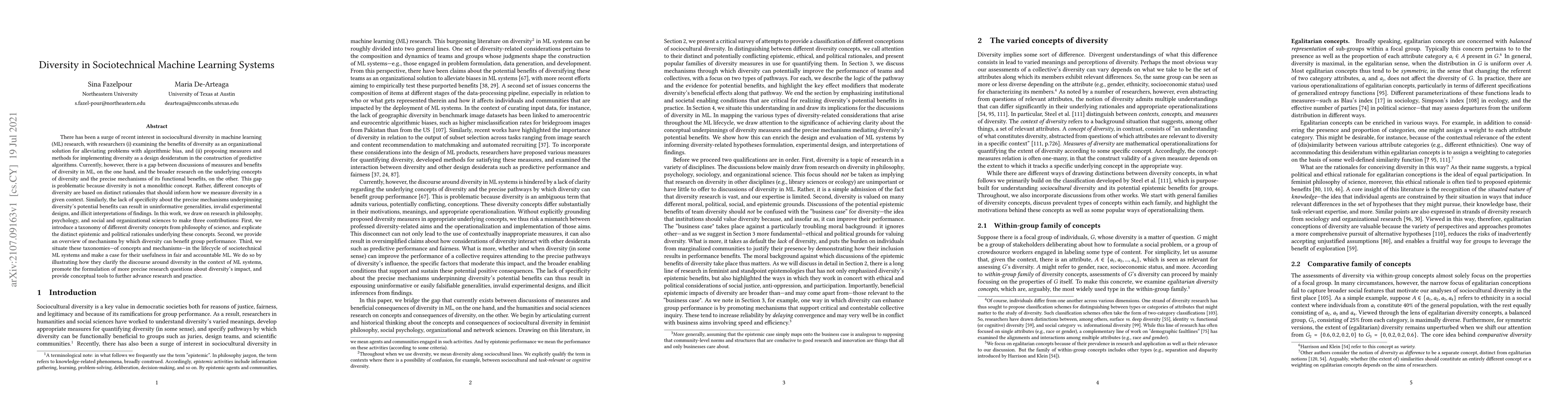 This research paper introduces a taxonomy of diversity concepts to improve understanding of sociotechnical machine learning systems, providing tools for fair and accountable ML design.