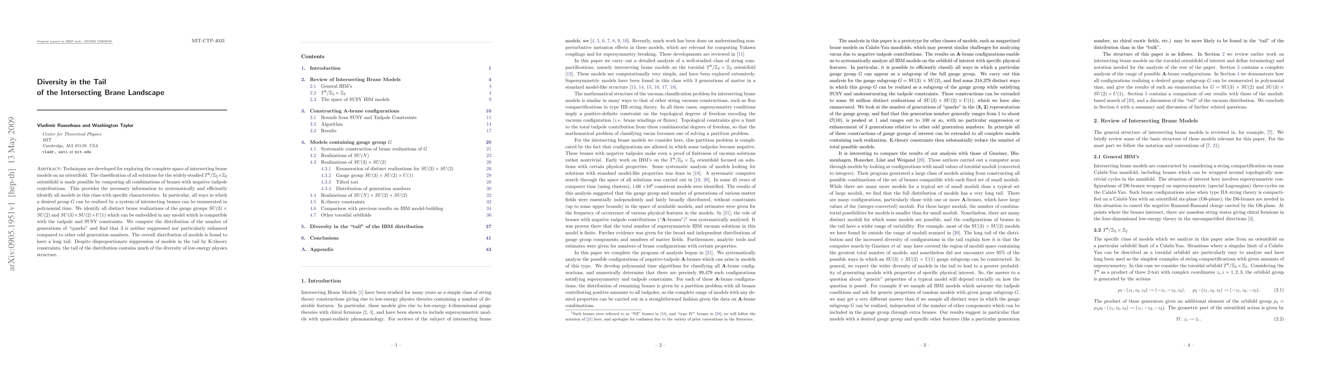 This paper develops techniques to classify intersecting brane models on an orientifold, identifying all possible configurations that realize specific gauge groups while satisfying constraints. It reveals that the distribution of these models has a long tail, indicating significant diversity in low-energy physics structures despite suppression.
