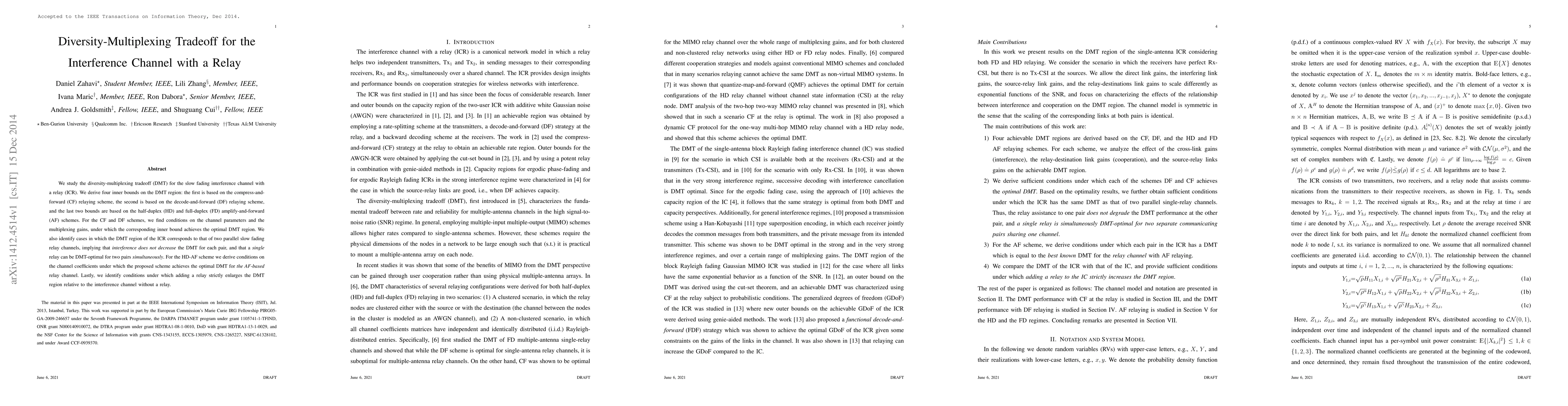 We study the diversity-multiplexing tradeoff (DMT) for the slow fading interference channel with a relay (ICR). We derive four inner bounds on the DMT region: the first is based on the compress-and-forward (CF) relaying scheme, the second is based on the decode-and-forward (DF) relaying scheme, and the last two bounds are based on the half-duplex (HD) and full-duplex (FD) amplify-and-forward (AF) schemes. For the CF and DF schemes, we find conditions on the channel parameters and the multiplexing gains, under which the corresponding inner bound achieves the optimal DMT region. We also identify cases in which the DMT region of the ICR corresponds to that of two parallel slow fading relay channels, implying that interference does not decrease the DMT for each pair, and that a single relay can be DMT-optimal for two pairs simultaneously. For the HD-AF scheme we derive conditions on the channel coefficients under which the proposed scheme achieves the optimal DMT for the AF-based relay channel. Lastly, we identify conditions under which adding a relay strictly enlarges the DMT region relative to the interference channel without a relay.