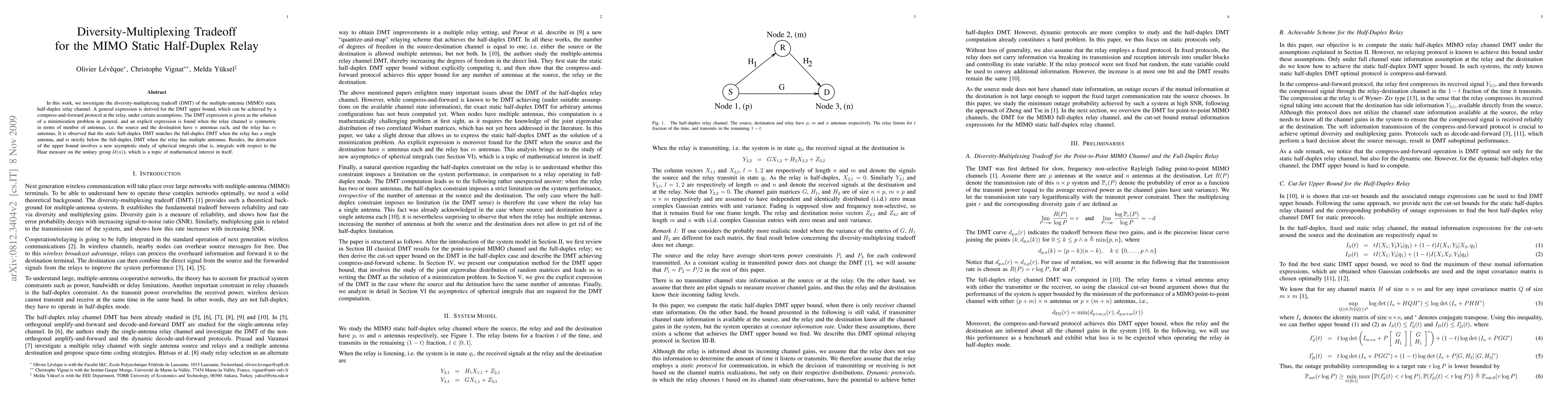 This paper investigates the diversity-multiplexing tradeoff (DMT) for MIMO static half-duplex relay channels, deriving a general expression for the DMT upper bound achievable via a compress-and-forward protocol. It finds that the static half-duplex DMT matches the full-duplex DMT with a single relay antenna but is lower with multiple antennas.