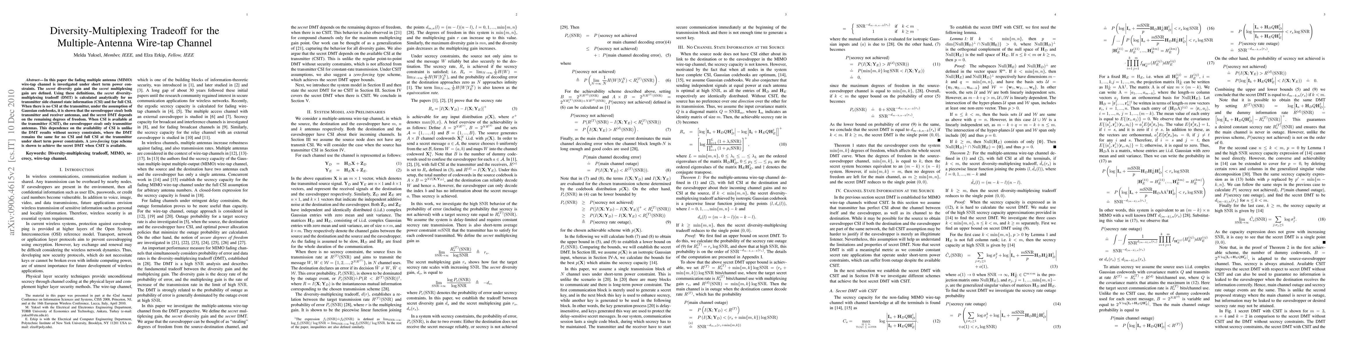 This paper investigates the diversity-multiplexing tradeoff (DMT) for a multiple-antenna wire-tap channel under short-term power constraints. It defines secret diversity and multiplexing gains, showing that the secret DMT depends on the availability of transmitter side channel state information, contrasting with non-secrecy scenarios.