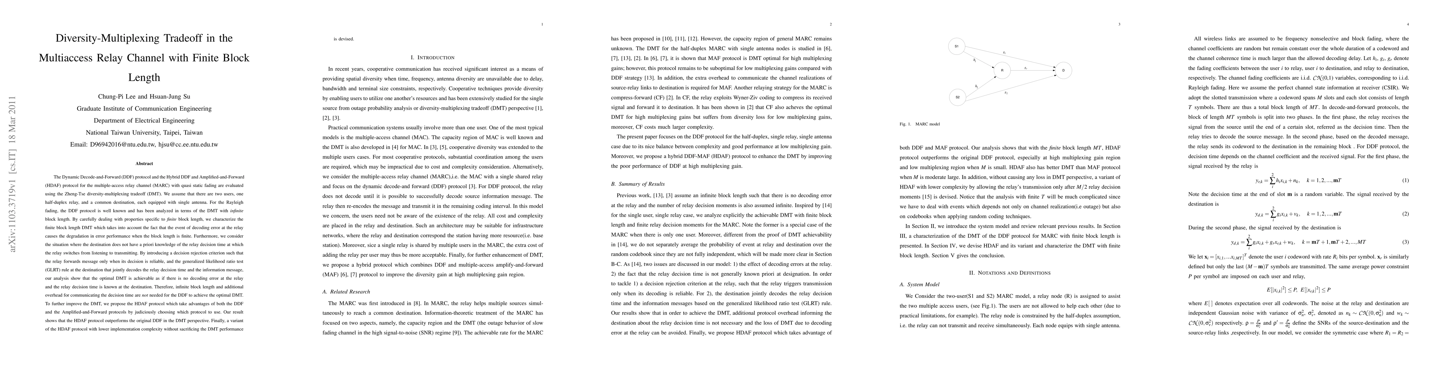 The Dynamic Decode-and-Forward (DDF) protocol and the Hybrid DDF and Amplified-and-Forward (HDAF) protocol for the multiple-access relay channel (MARC) with quasi static fading are evaluated using the Zheng-Tse diversity-multiplexing tradeoff (DMT). We assume that there are two users, one half-duplex relay, and a common destination, each equipped with single antenna. For the Rayleigh fading, the DDF protocol is well known and has been analyzed in terms of the DMT with infinite block length. By carefully dealing with properties specific to finite block length, we characterize the finite block length DMT which takes into account the fact that the event of decoding error at the relay causes the degradation in error performance when the block length is finite. Furthermore, we consider the situation where the destination does not have a priori knowledge of the relay decision time at which the relay switches from listening to transmitting. By introducing a decision rejection criterion such that the relay forwards message only when its decision is reliable, and the generalized likelihood ratio test (GLRT) at the destination that jointly decodes the relay decision time and the information message, our analysis show that the optimal DMT is achievable as if there is no decoding error at the relay and the relay decision time is known at the destination. Therefore, infinite block length and additional overhead for communicating the decision time are not needed for the DDF to achieve the optimal DMT. To further improve the DMT, we propose the HDAF protocol which take advantages of both the DDF and the Amplified-and-Forward protocols by judiciously choosing which protocol to use. Our result shows that the HDAF protocol outperforms the original DDF in the DMT perspective. Finally, a variant of the HDAF protocol with lower implementation complexity without sacrificing the DMT performance is devised.