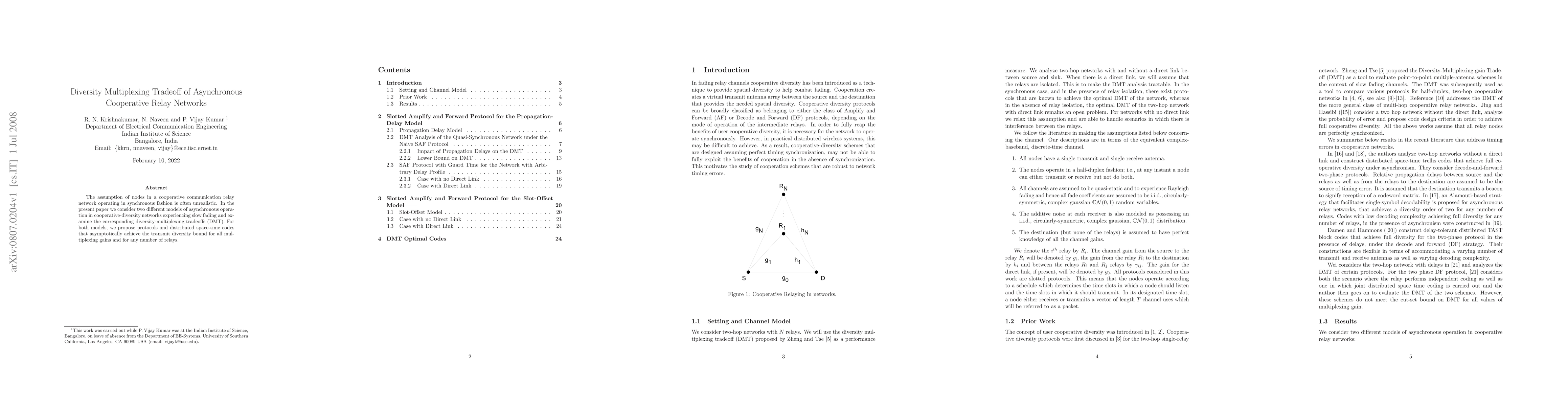 This paper investigates asynchronous cooperative relay networks under slow fading conditions, examining diversity-multiplexing tradeoffs (DMT) for two different operational models. It proposes protocols and distributed space-time codes that achieve optimal transmit diversity for all multiplexing gains and any relay count.