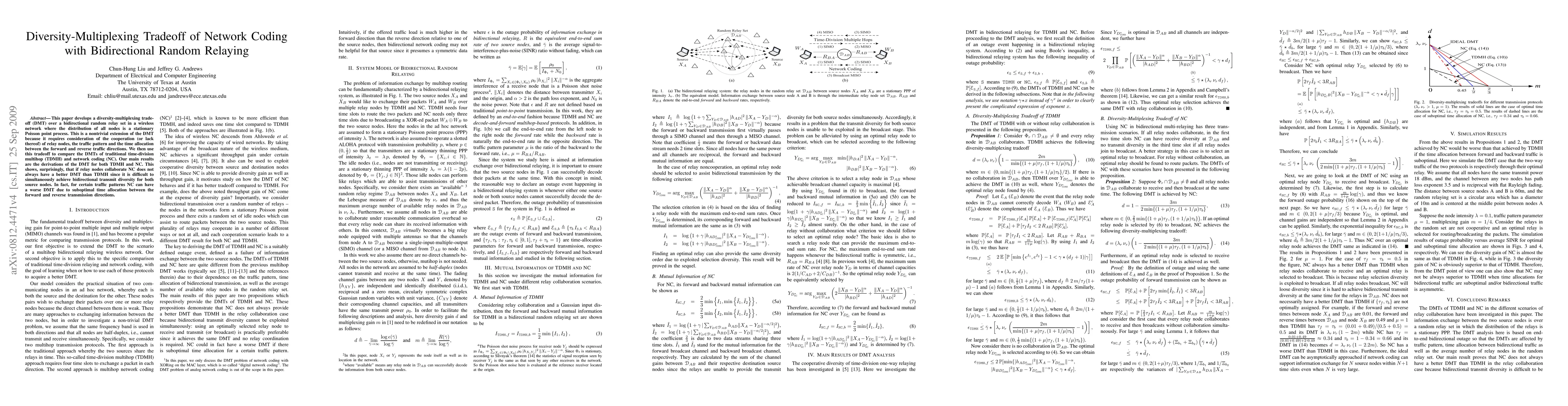 This paper develops a diversity-multiplexing tradeoff (DMT) over a bidirectional random relay set in a wireless network where the distribution of all nodes is a stationary Poisson point process. This is a nontrivial extension of the DMT because it requires consideration of the cooperation (or lack thereof) of relay nodes, the traffic pattern and the time allocation between the forward and reverse traffic directions. We then use this tradeoff to compare the DMTs of traditional time-division multihop (TDMH) and network coding (NC). Our main results are the derivations of the DMT for both TDMH and NC. This shows, surprisingly, that if relay nodes collaborate NC does not always have a better DMT than TDMH since it is difficult to simultaneously achieve bidirectional transmit diversity for both source nodes. In fact, for certain traffic patterns NC can have a worse DMT due to suboptimal time allocation between the forward and reverse transmission directions.