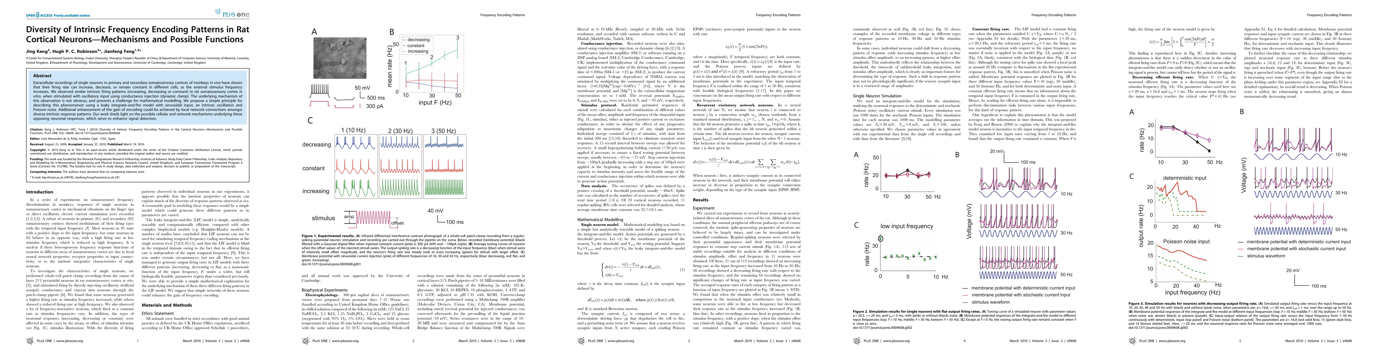 This study investigates the diverse intrinsic firing patterns in rat cortical neurons in response to oscillatory inputs, revealing increasing, decreasing, or constant firing rates. The researchers propose a leaky integrate-and-fire model to explain these patterns and suggest that local network connections may enhance signal detection through diverse intrinsic responses.