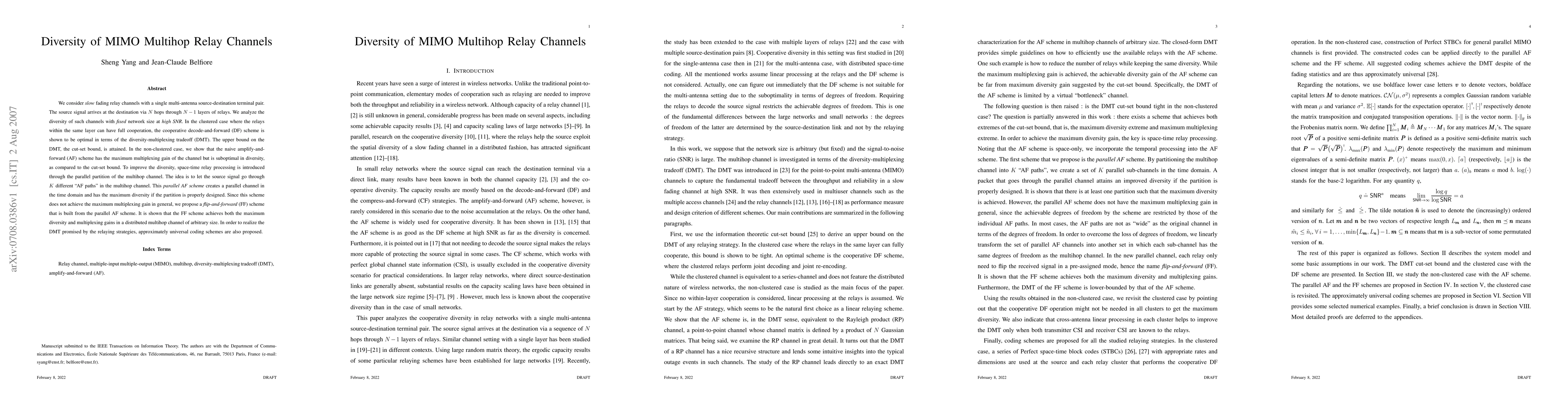 This paper investigates the diversity of multihop relay channels with multiple antennas in both clustered and non-clustered relay configurations. It proposes optimal relaying strategies, including cooperative decode-and-forward, parallel amplify-and-forward, and a flip-and-forward scheme, to achieve maximum diversity and multiplexing gains, along with the use of approximately universal coding schemes.