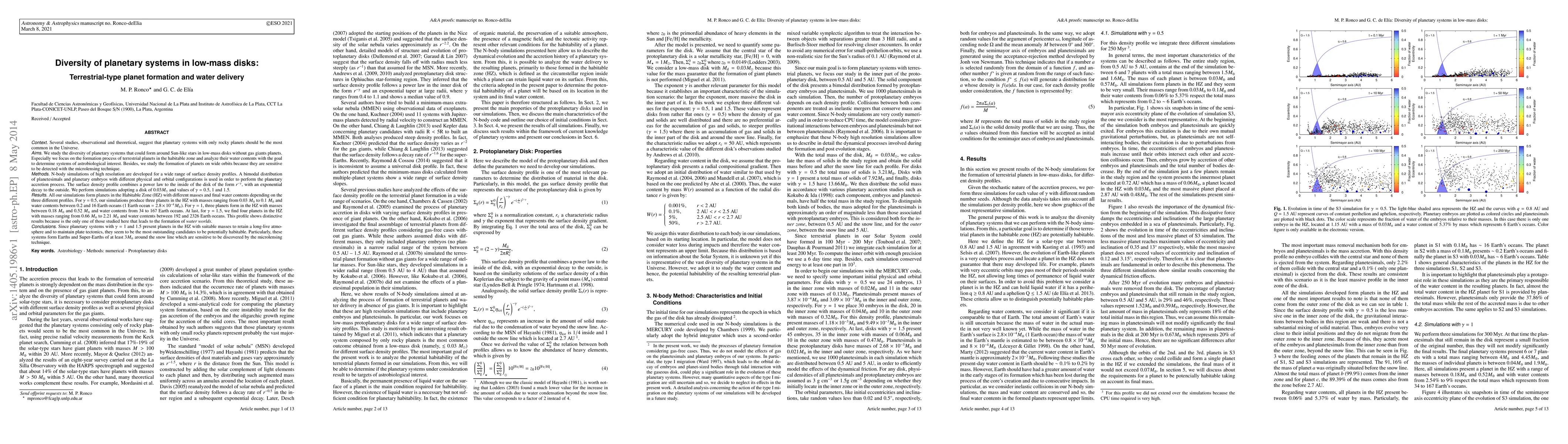This paper explores the formation of terrestrial planets in low-mass disks around Sun-like stars, focusing on their potential habitability based on water content. The study uses high-resolution N-body simulations to determine the diversity of planetary systems, finding that systems with surface density profiles of gamma = 1 and 1.5 produce Earth-like and Super-Earths with significant water content, making them prime candidates for habitability.