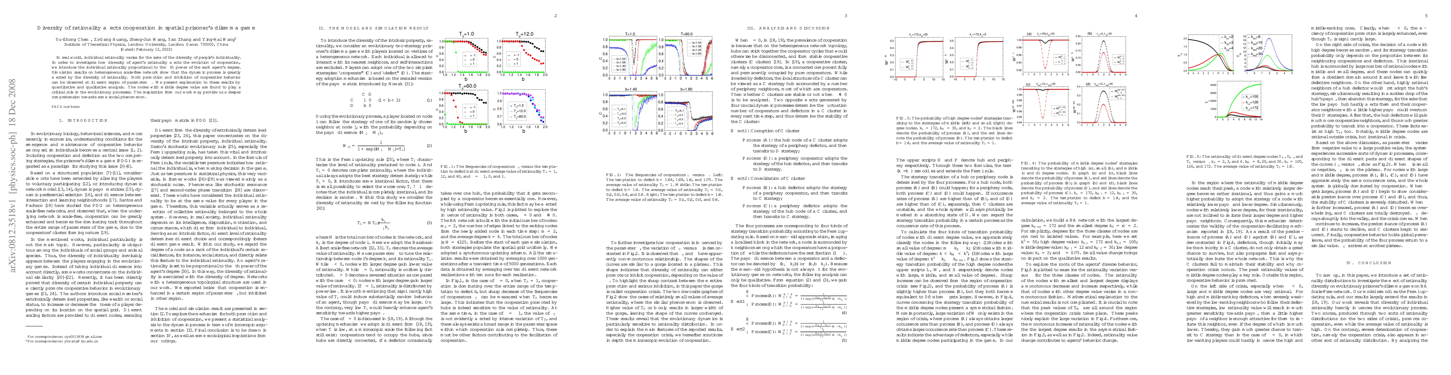 Diversity of rationality affects cooperation in a spatial prisoner's dilemma game, with middle-degree nodes playing a critical role in evolutionary processes.