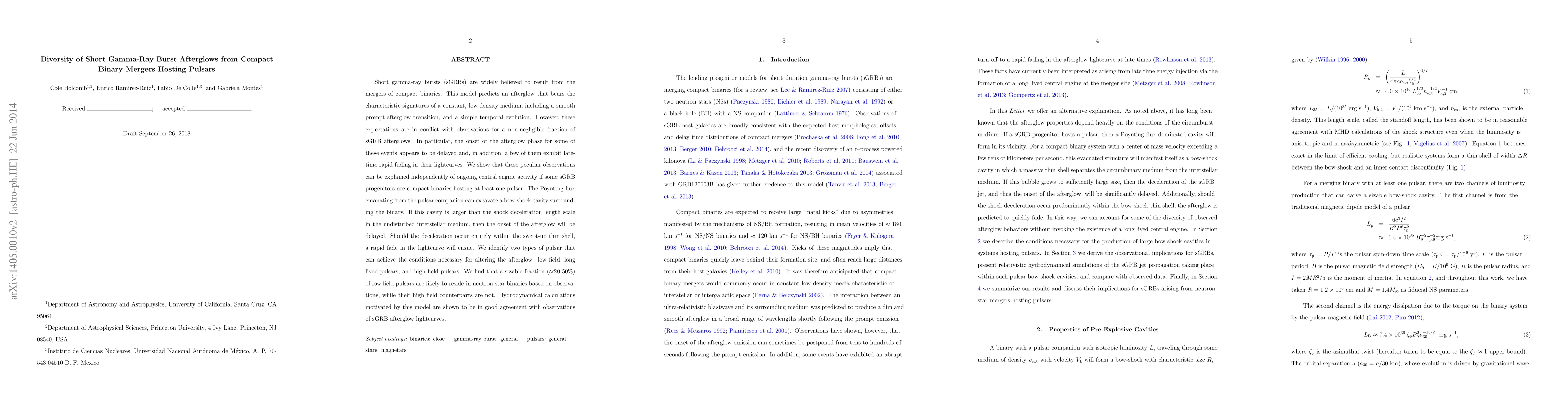 Short gamma-ray bursts (sGRBs) are widely believed to result from the mergers of compact binaries. This model predicts an afterglow that bears the characteristic signatures of a constant, low density medium, including a smooth prompt-afterglow transition, and a simple temporal evolution. However, these expectations are in conflict with observations for a non-negligible fraction of sGRB afterglows. In particular, the onset of the afterglow phase for some of these events appears to be delayed and, in addition, a few of them exhibit late- time rapid fading in their lightcurves. We show that these peculiar observations can be explained independently of ongoing central engine activity if some sGRB progenitors are compact binaries hosting at least one pulsar. The Poynting flux emanating from the pulsar companion can excavate a bow-shock cavity surround- ing the binary. If this cavity is larger than the shock deceleration length scale in the undisturbed interstellar medium, then the onset of the afterglow will be delayed. Should the deceleration occur entirely within the swept-up thin shell, a rapid fade in the lightcurve will ensue. We identify two types of pulsar that can achieve the conditions necessary for altering the afterglow: low field, long lived pulsars, and high field pulsars. We find that a sizable fraction (~20-50%) of low field pulsars are likely to reside in neutron star binaries based on observations, while their high field counterparts are not. Hydrodynamical calculations motivated by this model are shown to be in good agreement with observations of sGRB afterglow lightcurves.