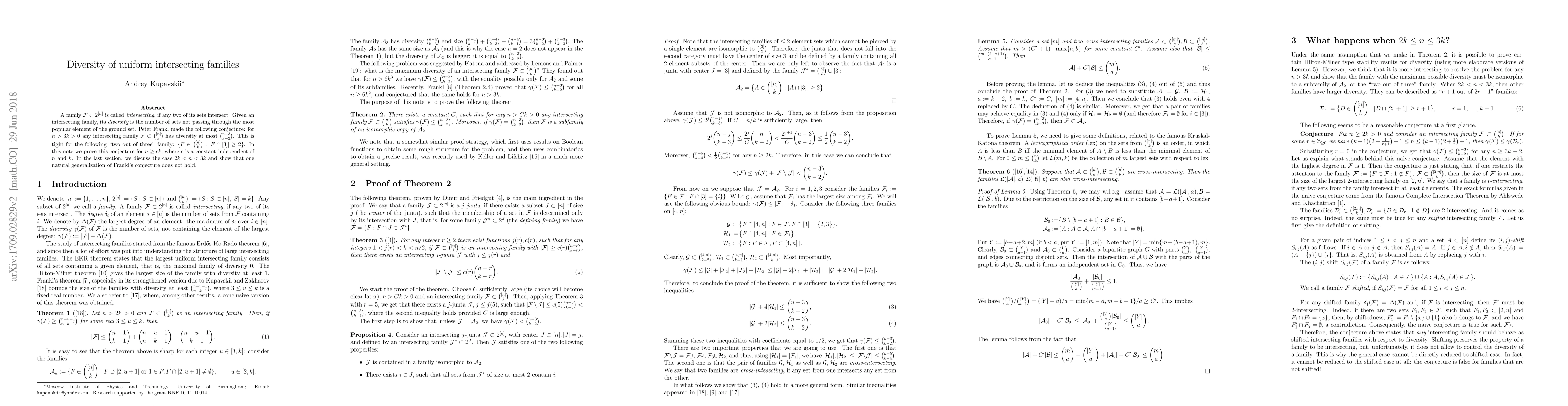 sets intersect. Given an intersecting family, its diversity is the number of