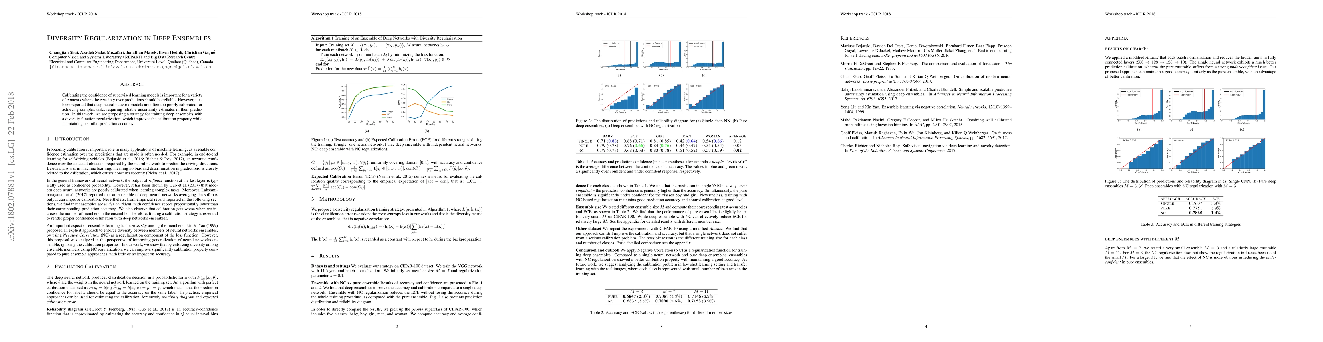 This paper proposes a method to train deep ensembles using diversity regularization to improve calibration without compromising prediction accuracy, addressing the issue of poor calibration in deep neural networks for complex tasks requiring reliable uncertainty estimates.