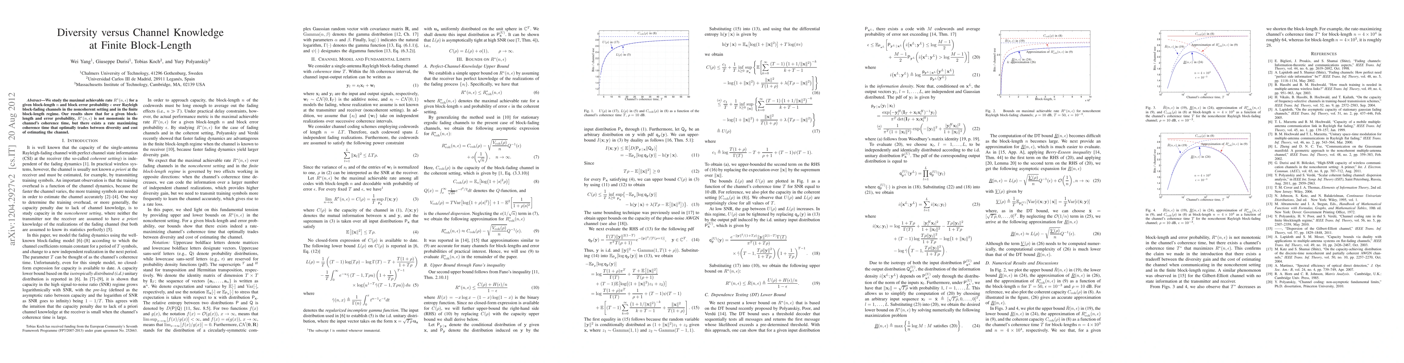 This paper investigates the maximal achievable rate for Rayleigh block-fading channels under finite block-length conditions, revealing that the optimal rate depends on a balance between diversity gain and the cost of channel estimation, rather than being monotonic with coherence time.