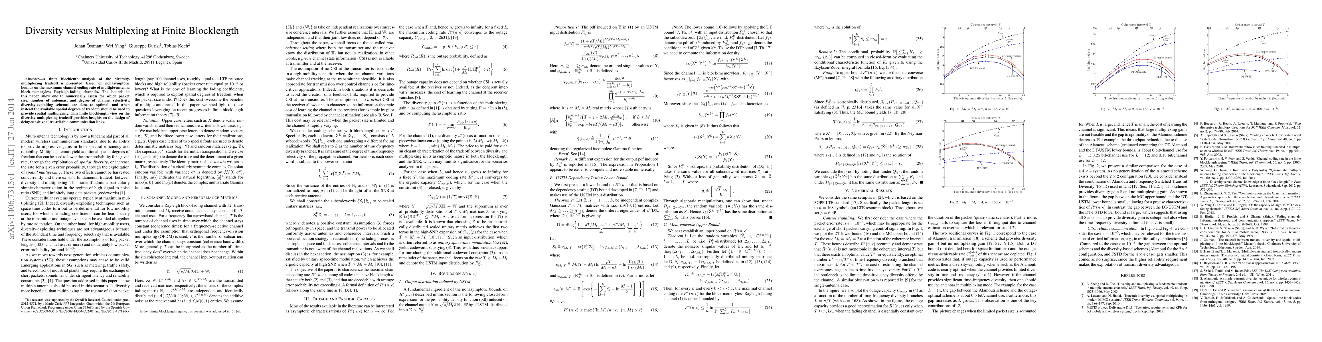 This paper analyzes the diversity-multiplexing tradeoff at finite blocklength for multiple-antenna Rayleigh-fading channels, providing nonasymptotic bounds to determine optimal coding schemes. It offers insights into balancing diversity and multiplexing for designing ultra-reliable, delay-sensitive communication links.