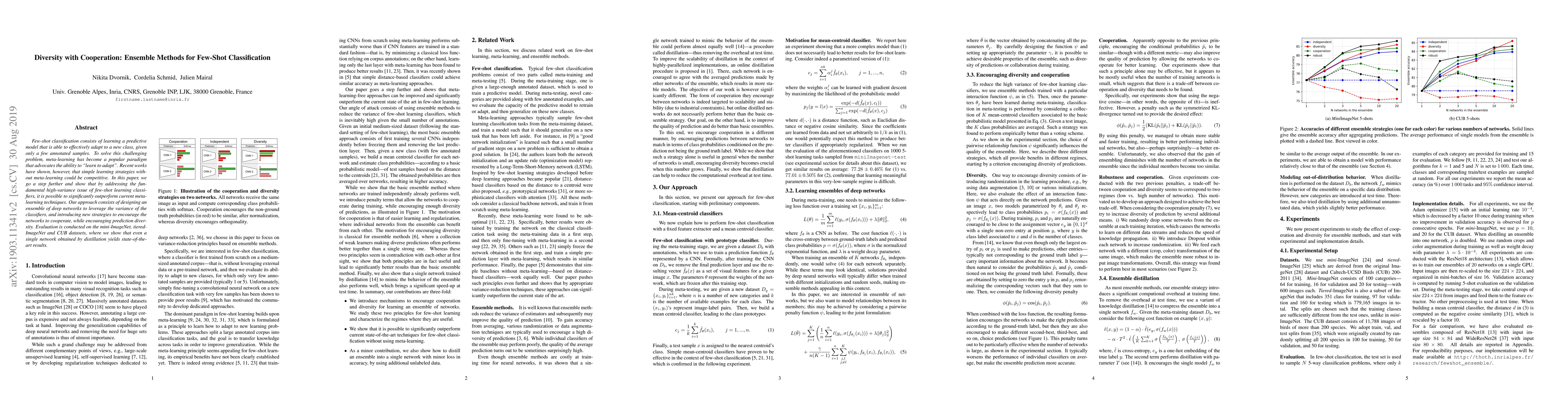 This paper proposes an ensemble method for few-shot classification that leverages the variance of deep networks to outperform meta-learning techniques. By encouraging cooperation and diversity among the ensemble members, the approach achieves state-of-the-art results on mini-ImageNet and CUB datasets.