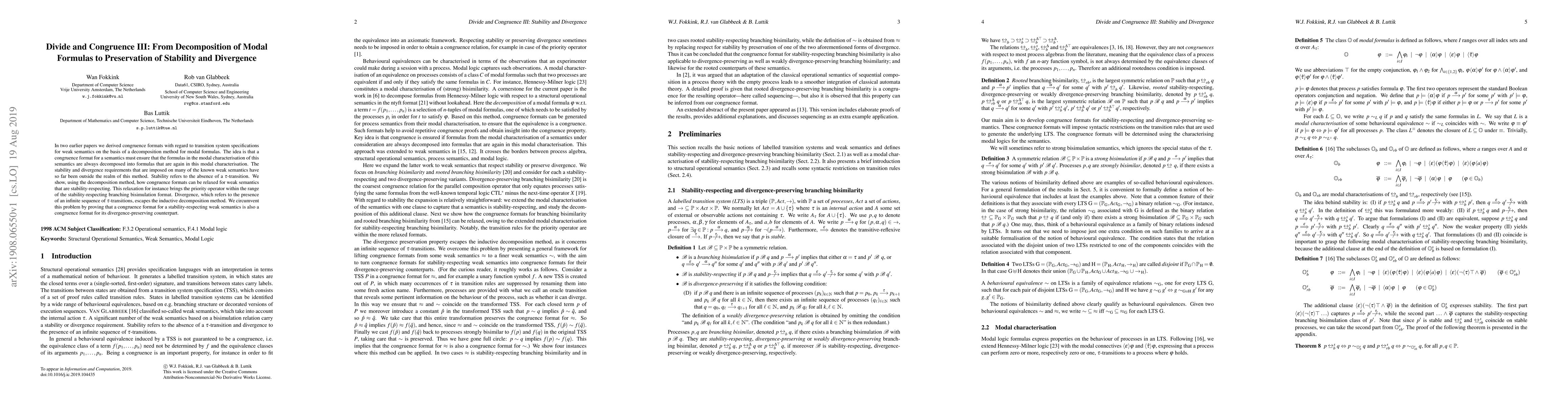 In two earlier papers we derived congruence formats with regard to transition system specifications for weak semantics on the basis of a decomposition method for modal formulas. The idea is that a congruence format for a semantics must ensure that the formulas in the modal characterisation of this semantics are always decomposed into formulas that are again in this modal characterisation. The stability and divergence requirements that are imposed on many of the known weak semantics have so far been outside the realm of this method. Stability refers to the absence of a $\tau$-transition. We show, using the decomposition method, how congruence formats can be relaxed for weak semantics that are stability-respecting. This relaxation for instance brings the priority operator within the range of the stability-respecting branching bisimulation format. Divergence, which refers to the presence of an infinite sequence of $\tau$-transitions, escapes the inductive decomposition method. We circumvent this problem by proving that a congruence format for a stability-respecting weak semantics is also a congruence format for its divergence-preserving counterpart.