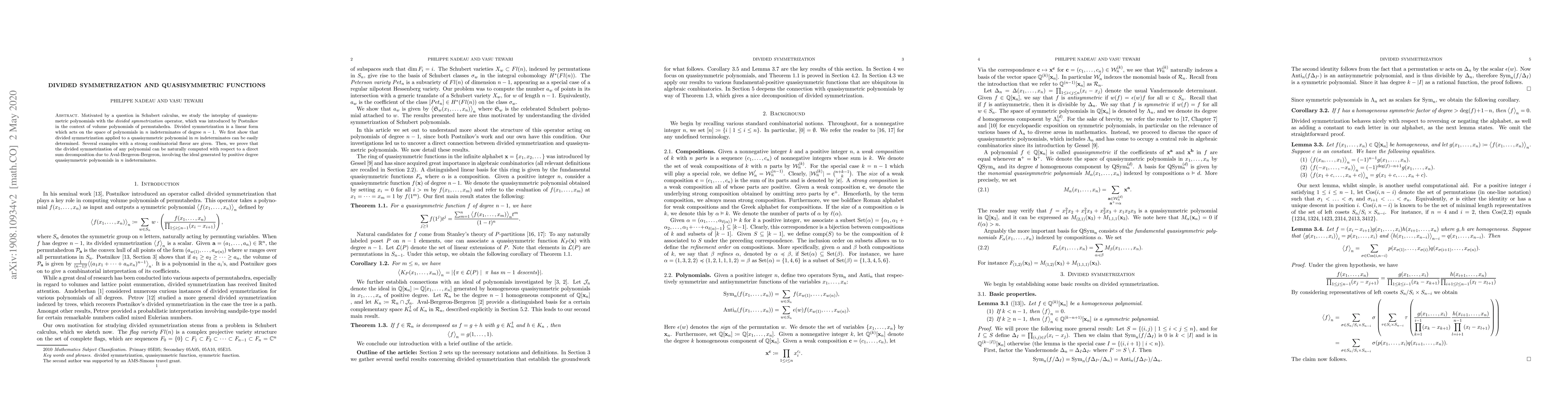 Researchers investigate how divided symmetrization interacts with quasisymmetric functions, finding a way to naturally compute its value on polynomials using a direct sum decomposition. They also provide examples with strong combinatorial flavor.