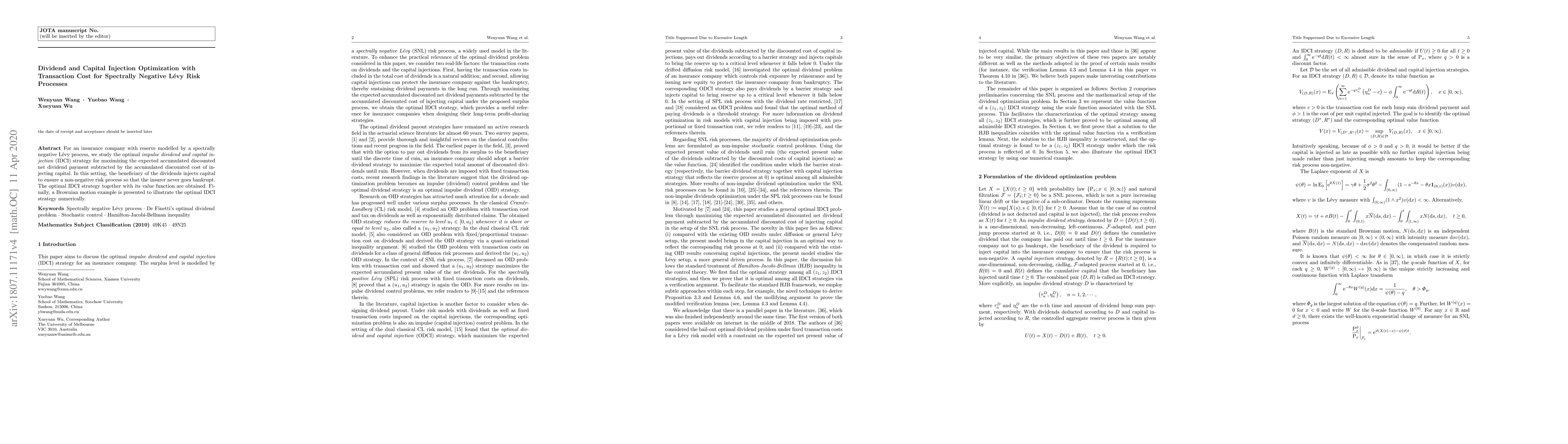 This paper investigates the optimal strategy for an insurance company to maximize expected net dividend payments by balancing dividend payouts and capital injections, considering transaction costs and modeled by a spectrally negative Lévy process, ensuring the risk process remains non-negative to prevent bankruptcy. The study derives the optimal impulse dividend and capital injection strategy along with its corresponding value function.