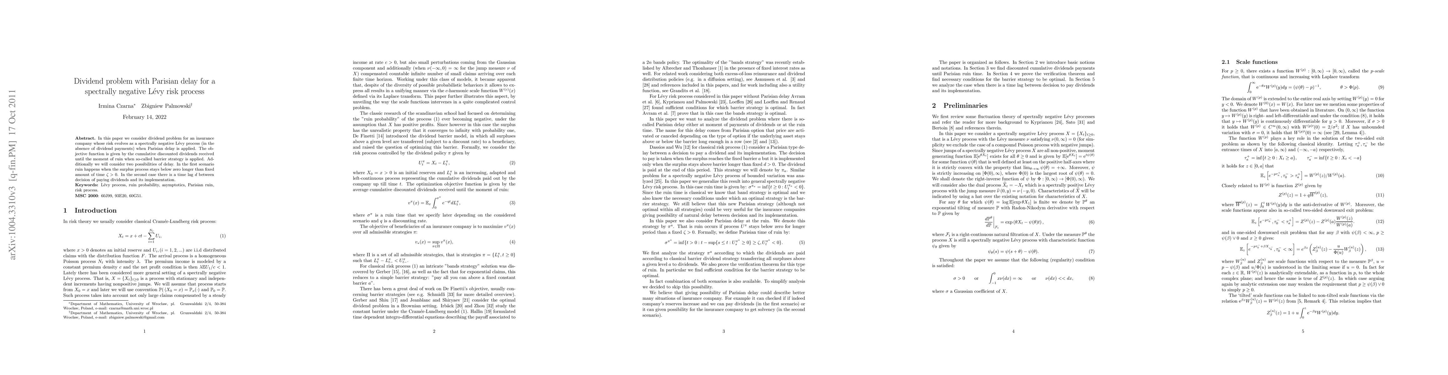 In this paper we consider dividend problem for an insurance company whose risk evolves as a spectrally negative L\'{e}vy process (in the absence of dividend payments) when Parisian delay is applied. The objective function is given by the cumulative discounted dividends received until the moment of ruin when so-called barrier strategy is applied. Additionally we will consider two possibilities of delay. In the first scenario ruin happens when the surplus process stays below zero longer than fixed amount of time $\zeta>0$. In the second case there is a time lag $d$ between decision of paying dividends and its implementation.