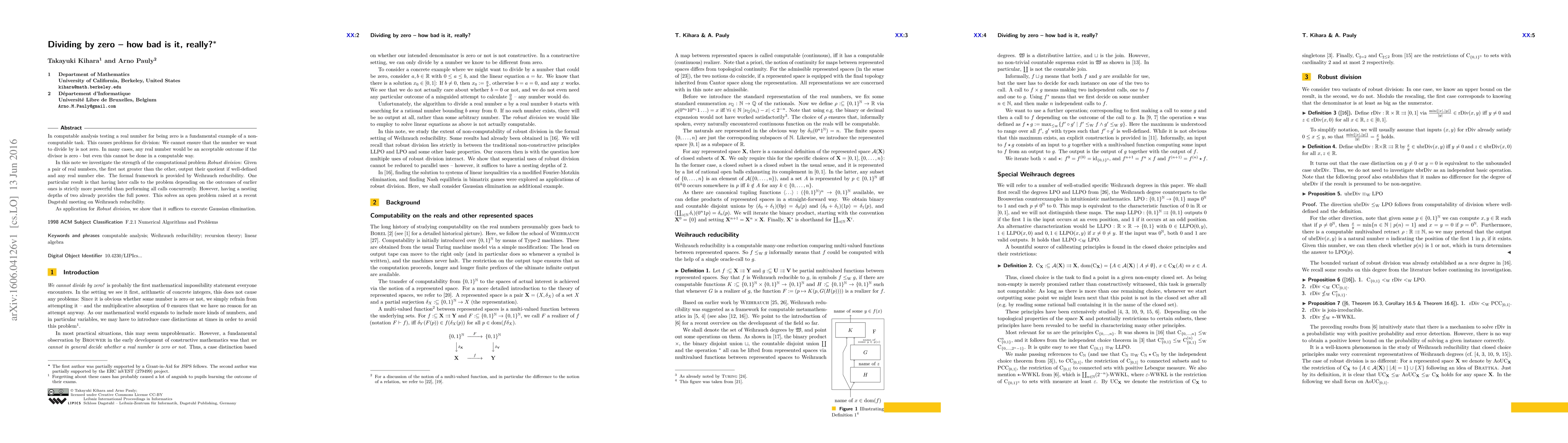 This paper explores the computational complexity of "Robust division," where the task is to compute the quotient of two real numbers if the divisor is non-zero, and return any real number if it is zero. It finds that sequential calls to the problem are more powerful than concurrent ones, with a nesting depth of two providing full computational power.