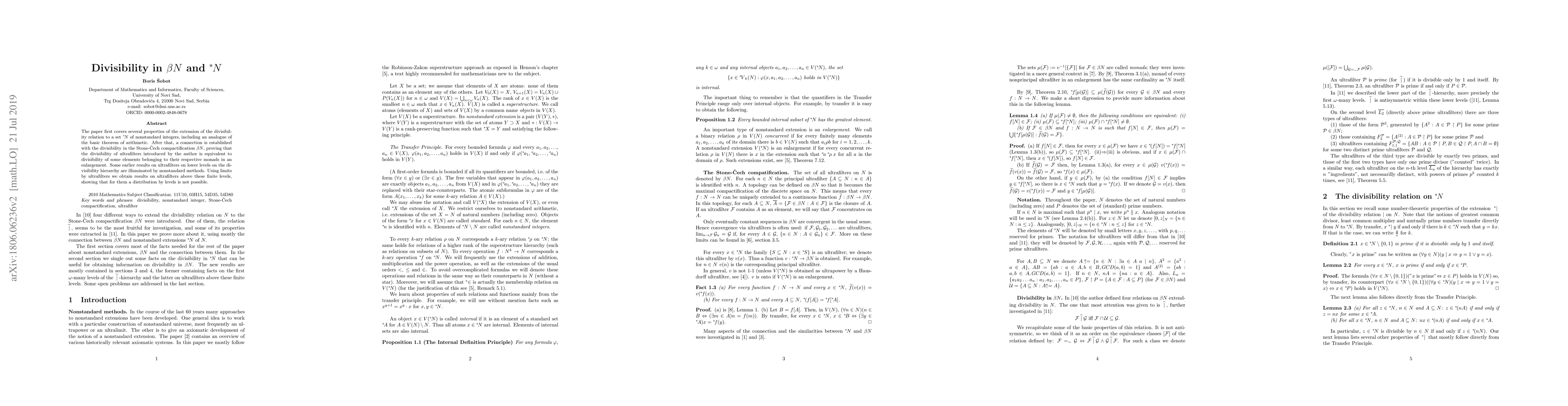 This paper explores divisibility in nonstandard integers and its connection to the Stone-çech compactification βN, introducing a new equivalent condition for ultrafilters.