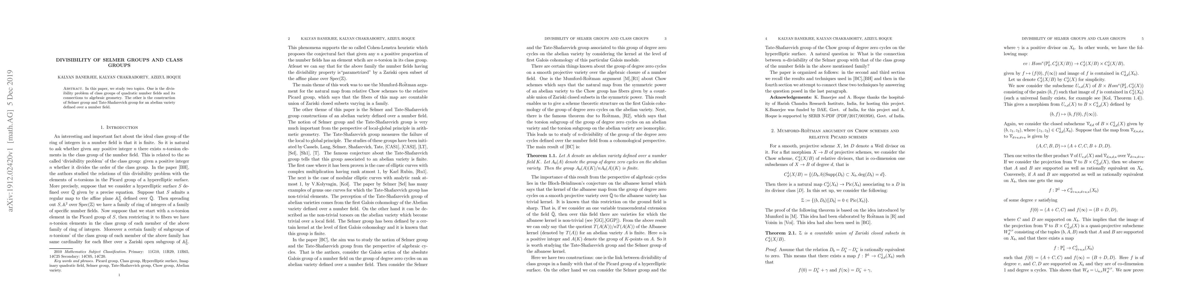 Summary: This paper investigates the divisibility of class groups in quadratic number fields, linking these to algebraic geometry, and constructs Selmer and Tate-Shafarevich groups for abelian varieties over number fields, exploring their properties and implications.