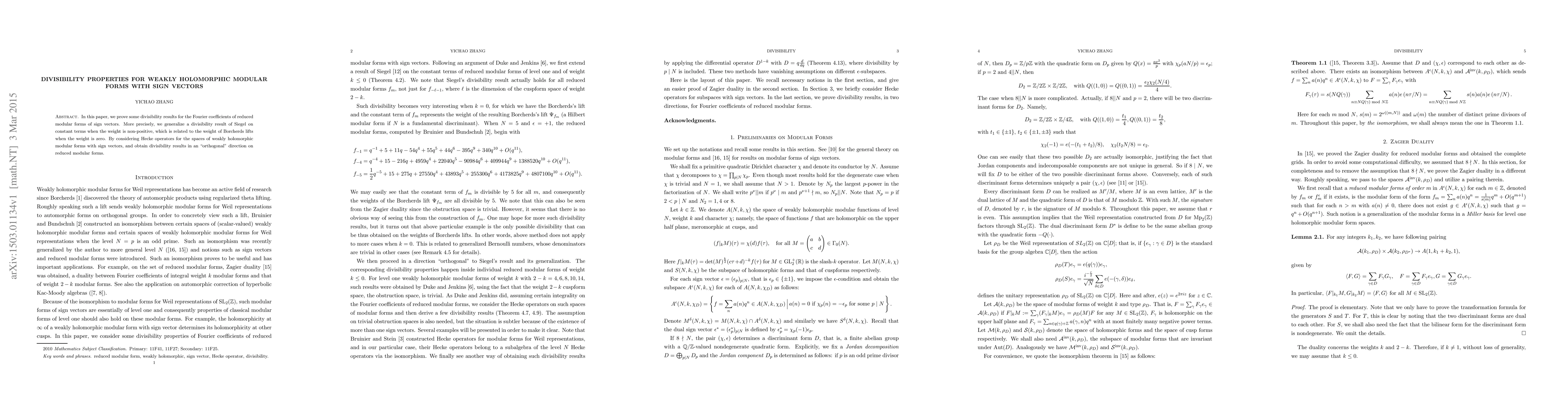 This paper proves divisibility results for Fourier coefficients of reduced modular forms with sign vectors, extending Siegel's work on constant terms for non-positive weights. The study employs Hecke operators to derive divisibility in an "orthogonal" direction for these forms.
