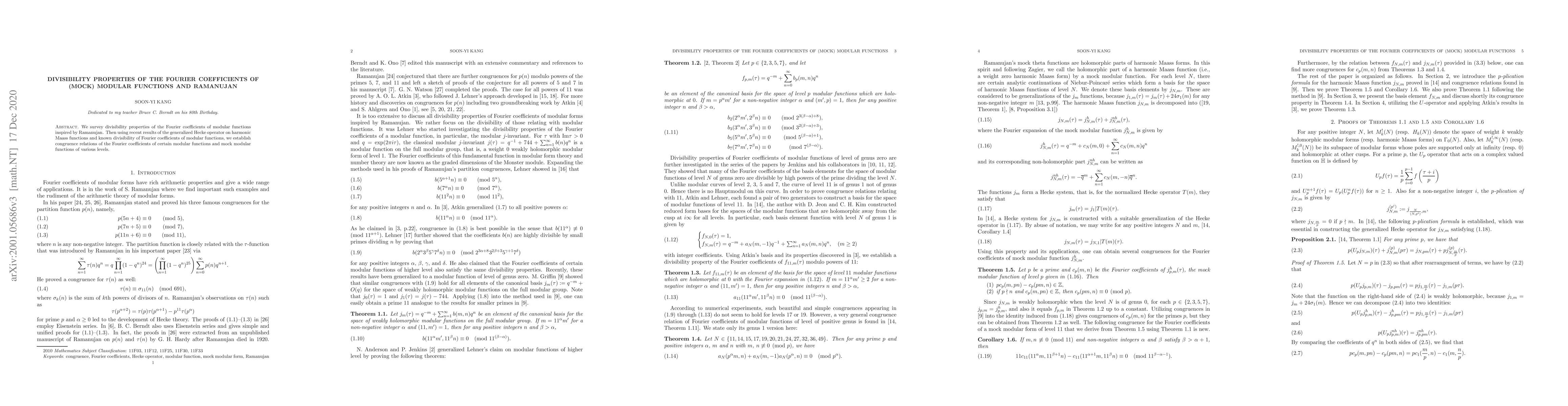 This paper surveys divisibility properties of the Fourier coefficients of modular functions, inspired by Ramanujan, and establishes congruence relations using recent results on generalized Hecke operators and known divisibility, focusing on modular and mock modular functions.
