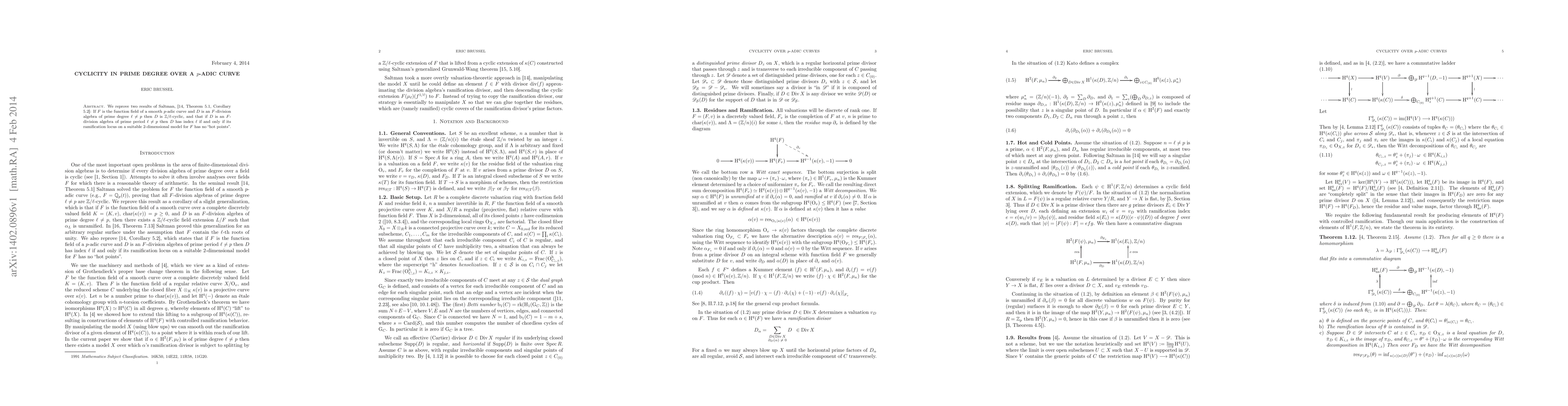 We reprove two results of Saltman, Theorem 5.1 and Corollary 5.2 of [Sa07]: If F is the function field of a smooth p-adic curve and D is an F-division algebra of prime degree l\neq p, then D is Z/l-cyclic, and that if D is an F-division algebra of prime period l\neq p then D has index l if and only if its ramification locus on a suitable 2-dimensional model forF has no "hot points".