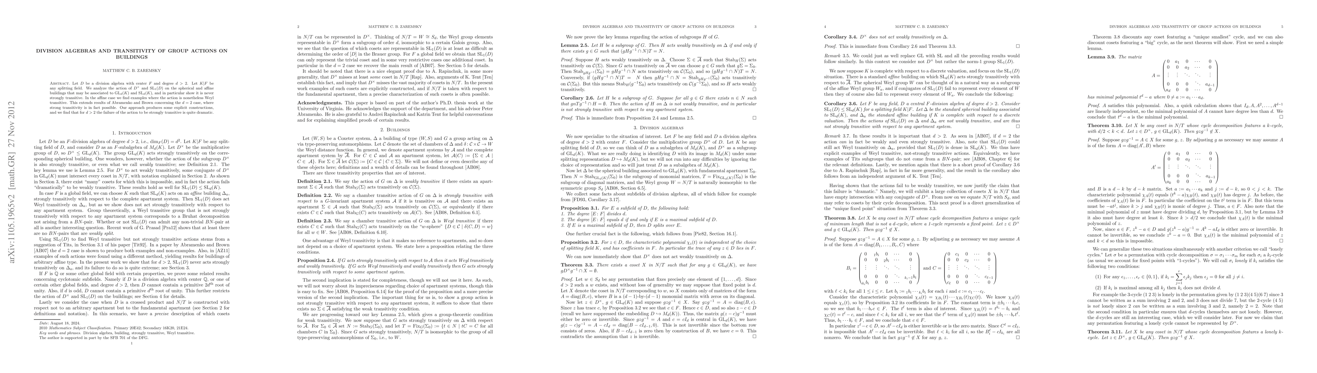 This paper investigates the group actions of division algebras on associated buildings, demonstrating that for degree greater than 2, these actions are never strongly transitive, contrasting with the d=2 case. It also identifies Weyl transitive actions in the affine case and provides explicit constructions.