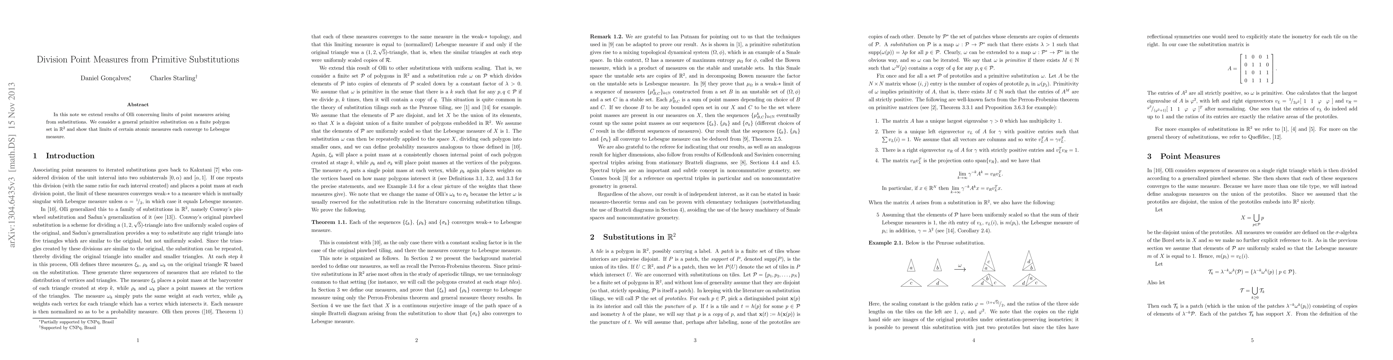 This paper extends Olli's results on point measures from substitutions, demonstrating that limits of atomic measures from a general primitive substitution on a finite polygon set converge to the Lebesgue measure in $\mathbb{R}^2$.