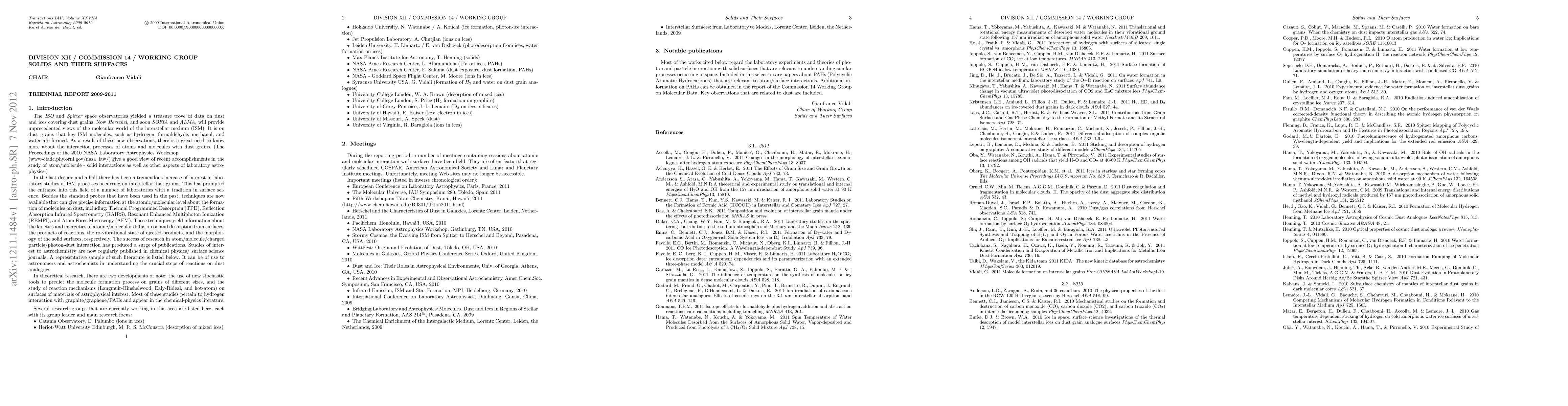 The ISO and Spitzer space observatories yielded a treasure trove of data on dust and ices covering dust grains. Now Herschel, and soon SOFIA and ALMA, will provide unprecedented views of the molecular world of the interstellar medium (ISM). It is on dust grains that key ISM molecules, such as hydrogen, formaldehyde, methanol, and water are formed. As a result of these new observations, there is a great need to know more about the interaction processes of atoms and molecules with dust grains. (The Proceedings of the 2010 NASA Laboratory Astrophysics Workshop (http://www-cfadc.phy.ornl.gov/nasa_law/) give a good view of recent accomplishments in the study of atom/molecule - solid interactions as well as other aspects of laboratory astrophysics.)