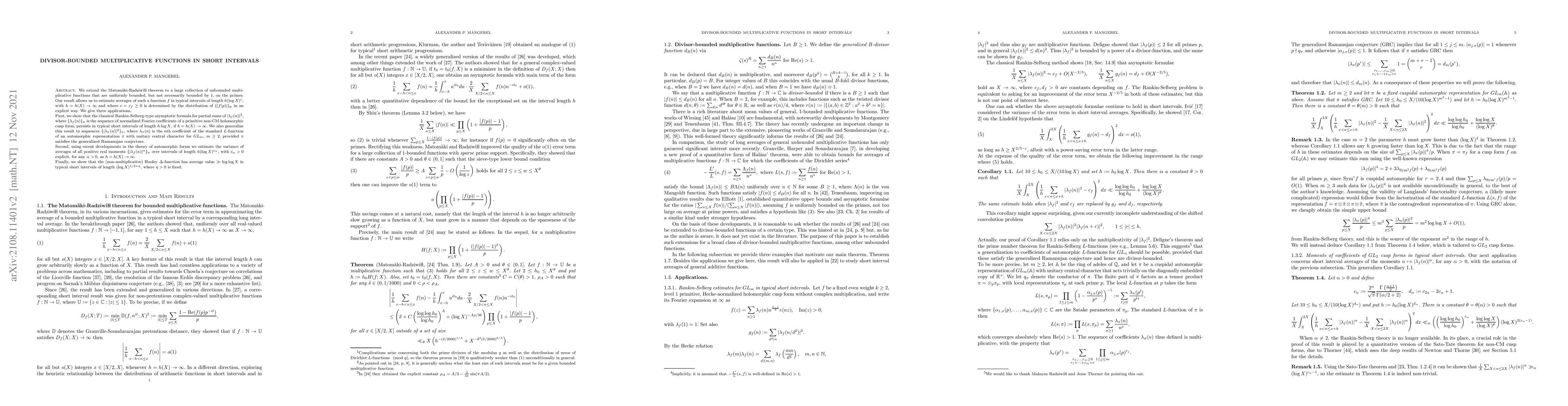 This paper extends the Matomäki-Radziwiłł theorem to divisor-bounded multiplicative functions, providing estimates for averages in short intervals. It applies to normalized Fourier coefficients of cusp forms and automorphic representations, estimating variances for positive real moments, and showing the average value of the Hooley $\Delta$-function in short intervals.